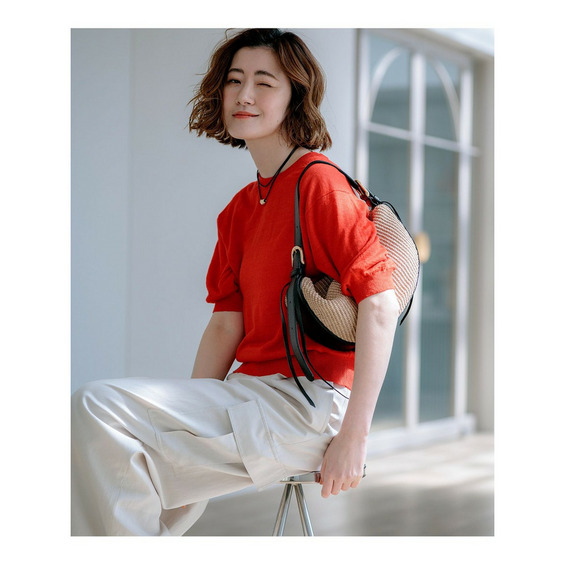 やや膨らみを持たせたパフスリーブのデザインと体のラインを拾いすぎないゆったりとしたシルエットが涼しげでリラックスした雰囲気を演出する大人のニットTシャツです。上質なリネン素材を使用することでTシャツ感覚で着られながらもカジュアルになりすぎず上品な印象を与えます。デニムと合わせた休日のカジュアルスタイルからきれいめなスカートやパンツと合わせたエレガントなスタイルまで幅広いシーンで活躍する一枚です。カラーは、鮮やかな色味が目を惹くレッド(#010)、麻本来のナチュラルな風合いを楽しめるベージュ(#033)、爽やかな印象を与えるグリーン(#060)、シックで知的な大人ネイビー(#075)の4色展開です。