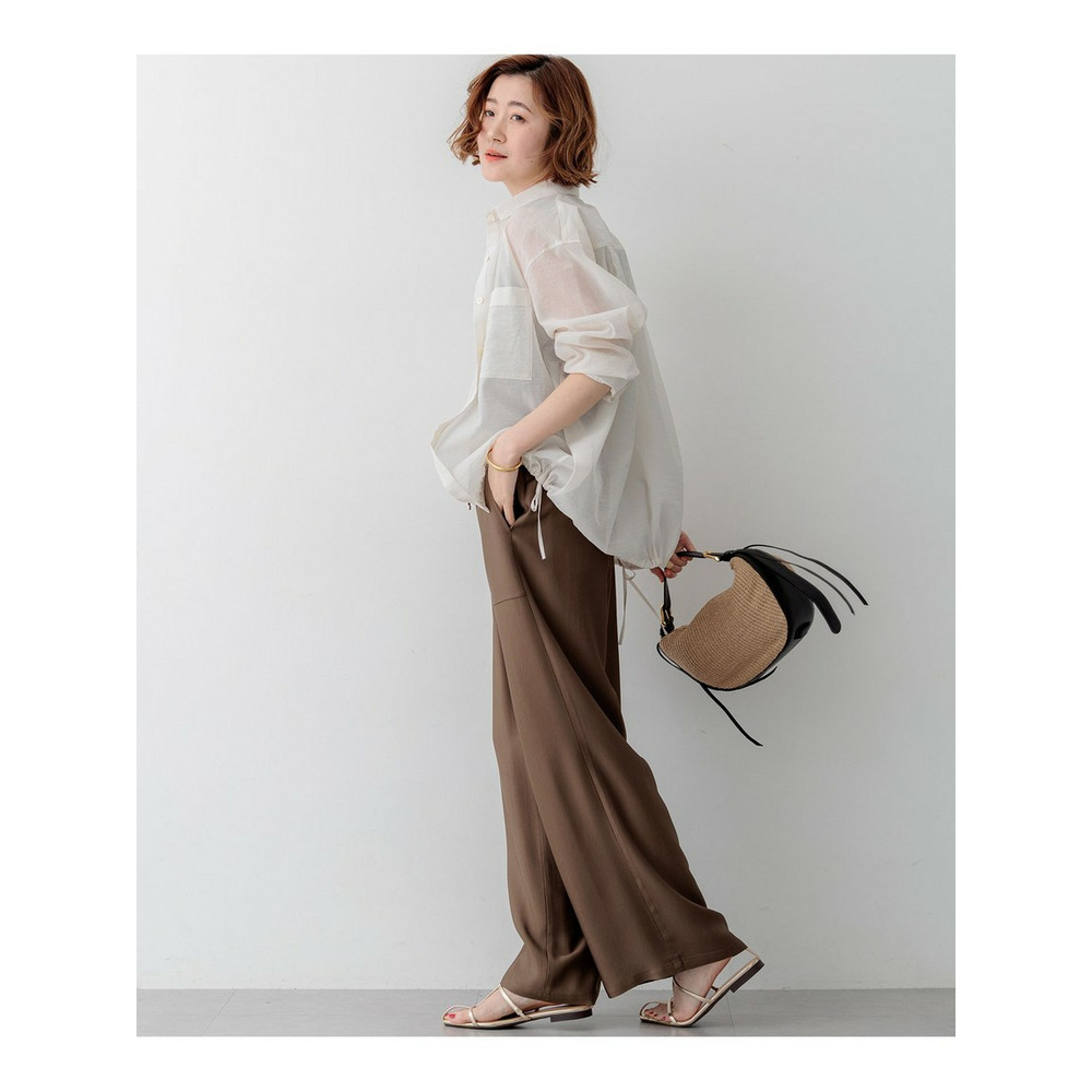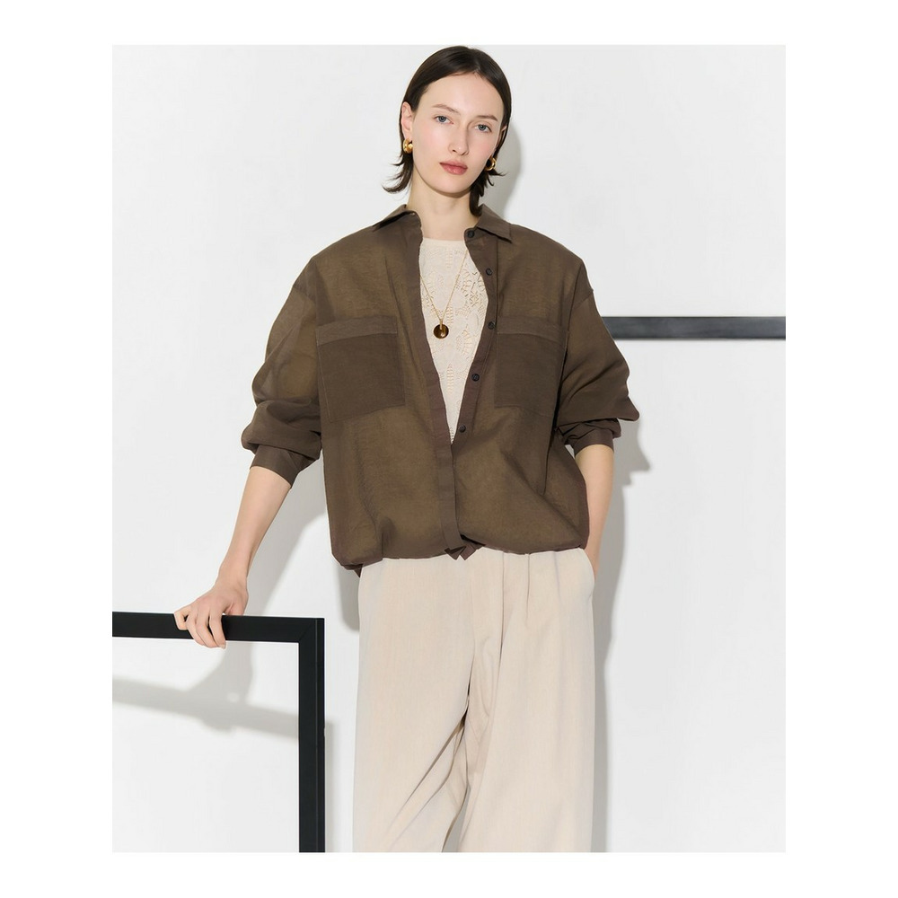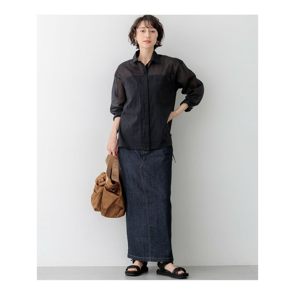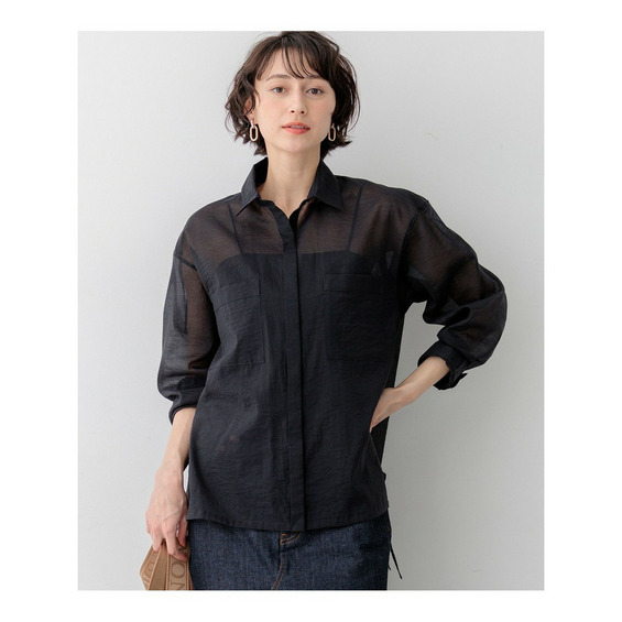 程よい透け感と光沢が上品。アレンジ自在な大人のシアーシャツ