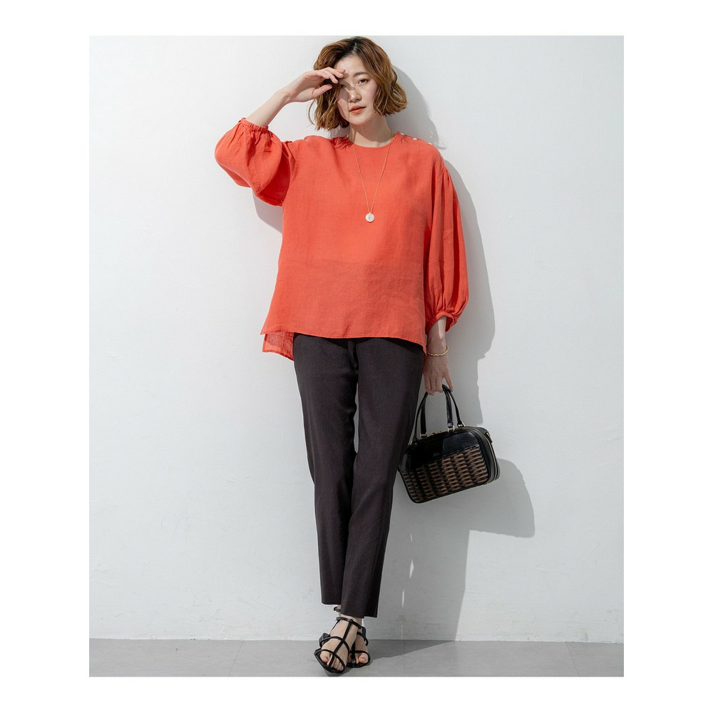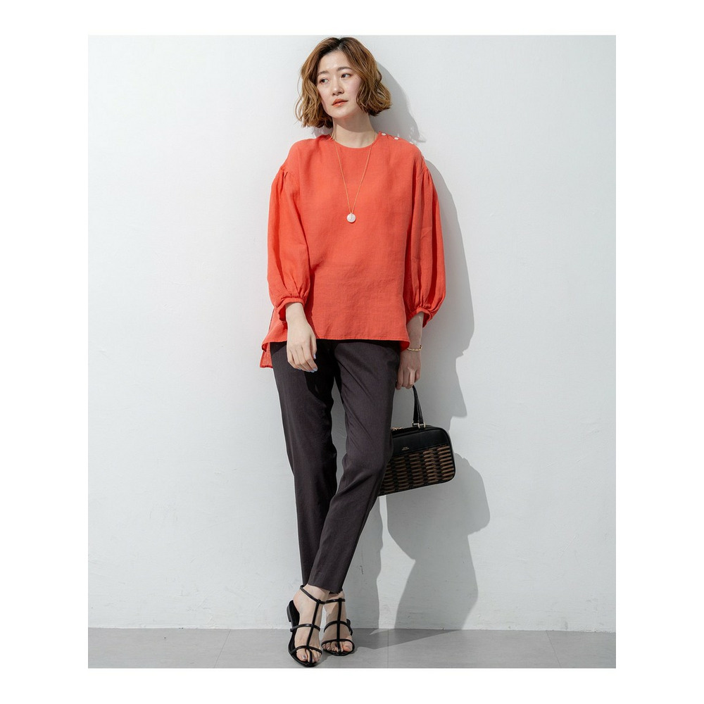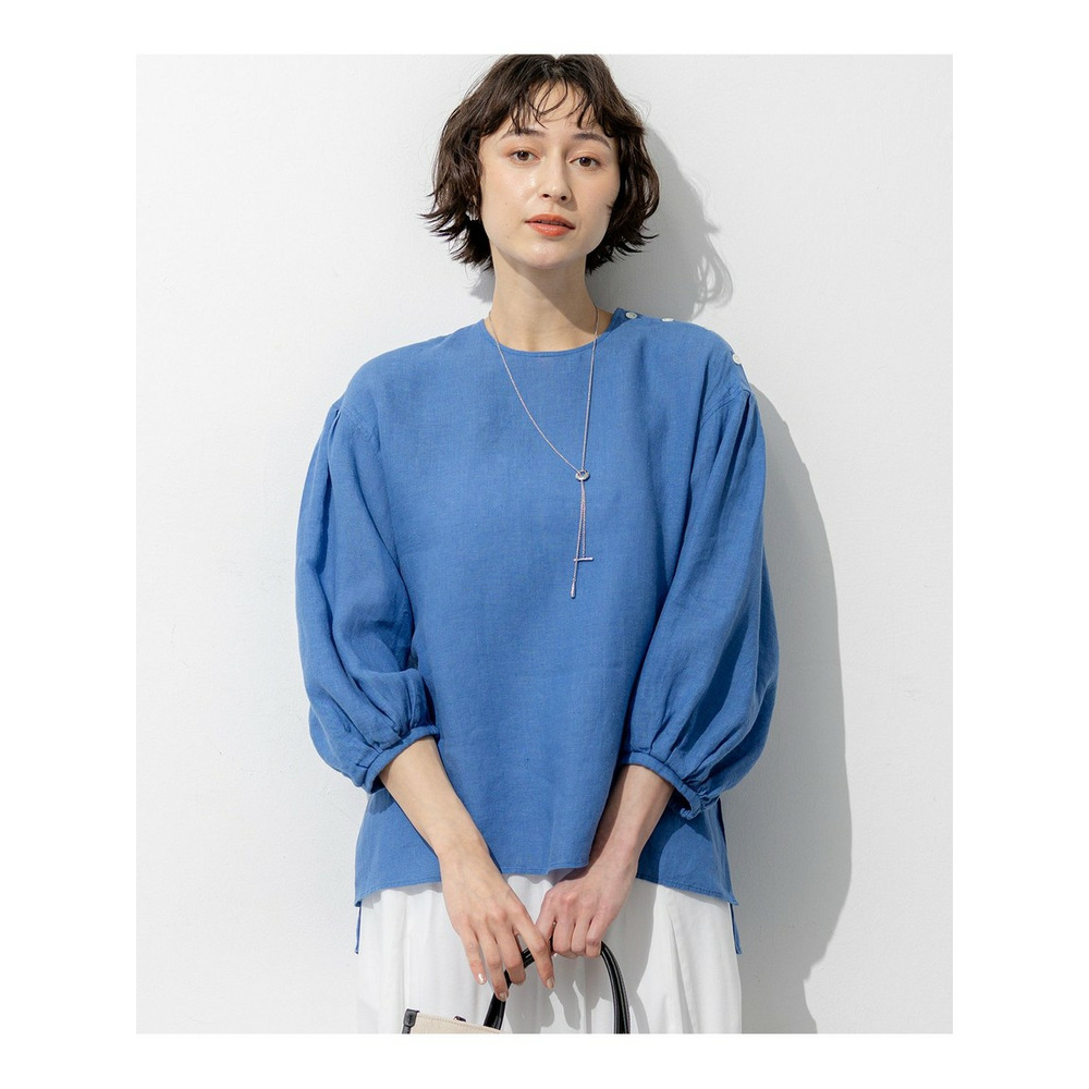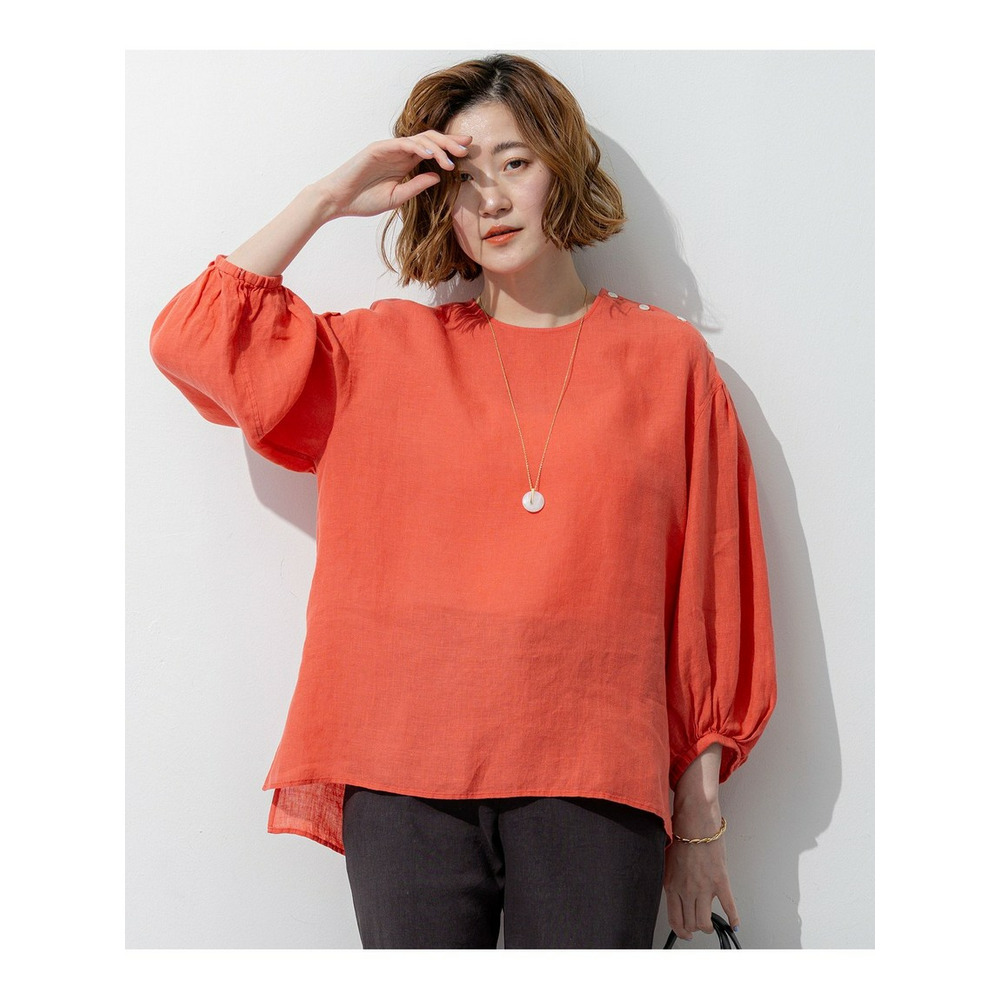 洗練されたリネンの風合い。一枚で着映える大人のボリュームスリーブブラウス