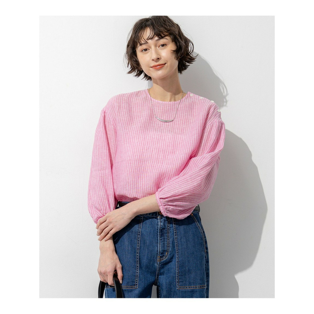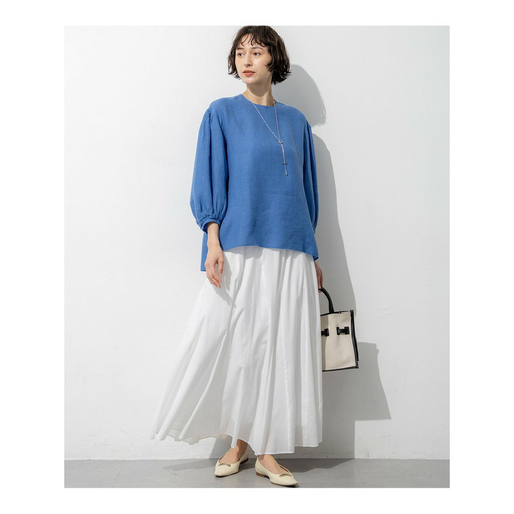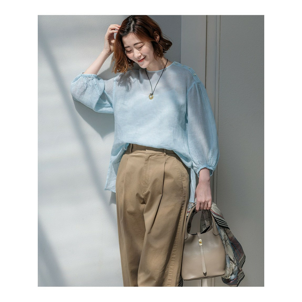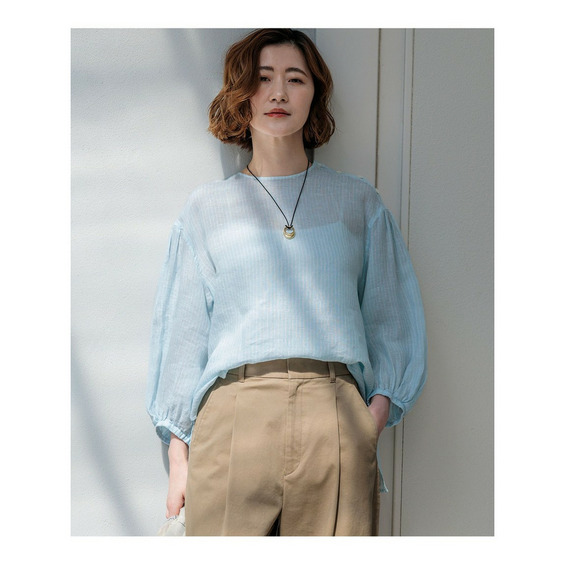 洗練されたリネンの風合い。一枚で着映える大人のボリュームスリーブブラウス