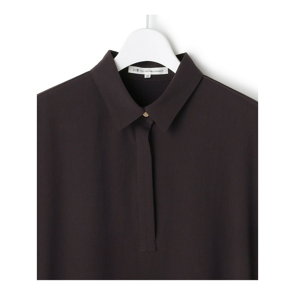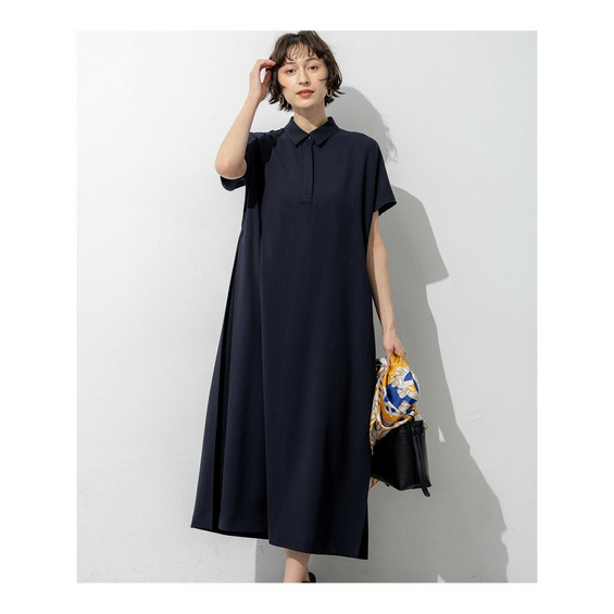 糸に凹凸感を持たせることで、肌にまとわりつきにくく、さらりとした快適な着心地を実現したウールのような上品な表情を持つ素材を使用しています。日本の合繊産地である北陸地方で丁寧に加工を施しており、薄手でありながらも程よいハリ感を持たせているため、ワンピースの美しいシルエットをしっかりとキープします。軽やかさと仕立て映えする上質な素材感が魅力です。