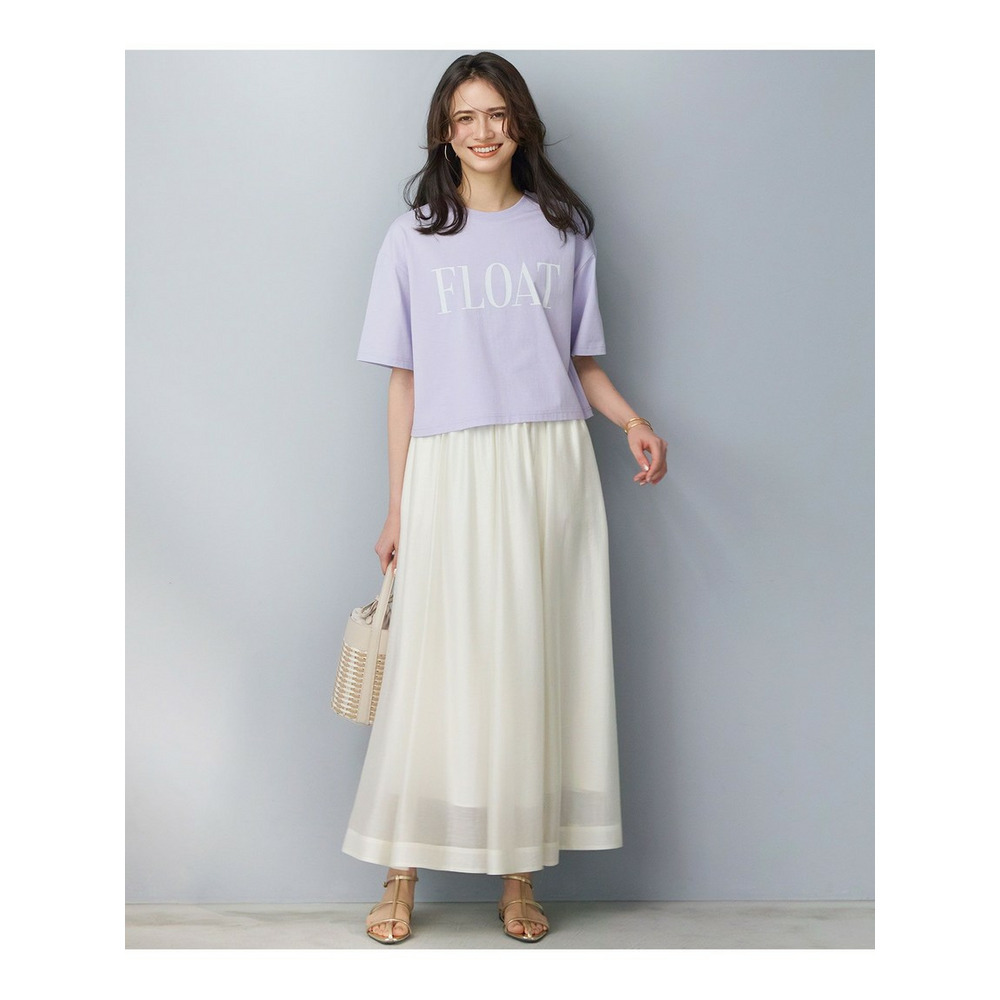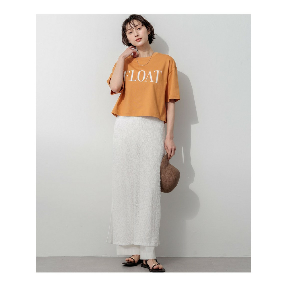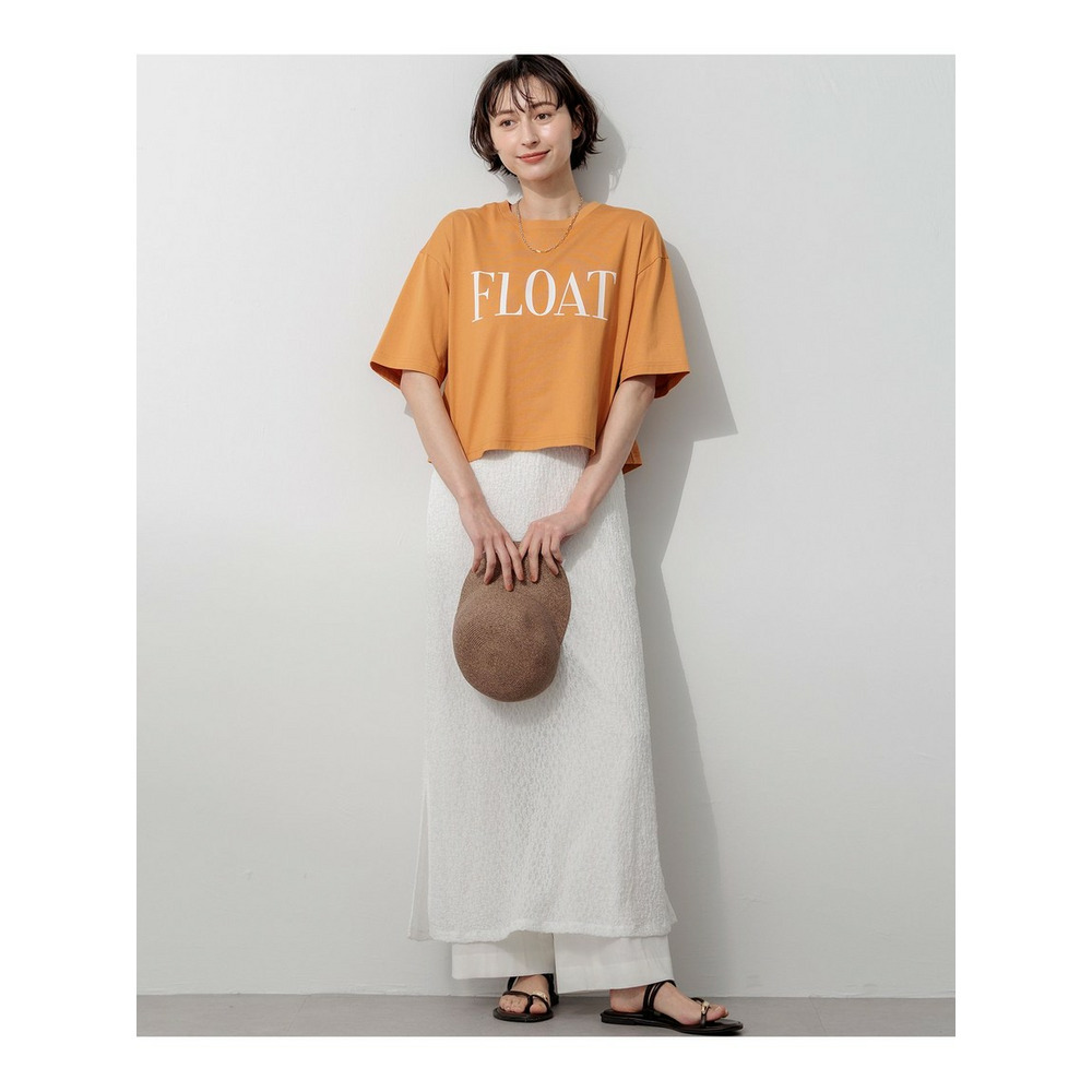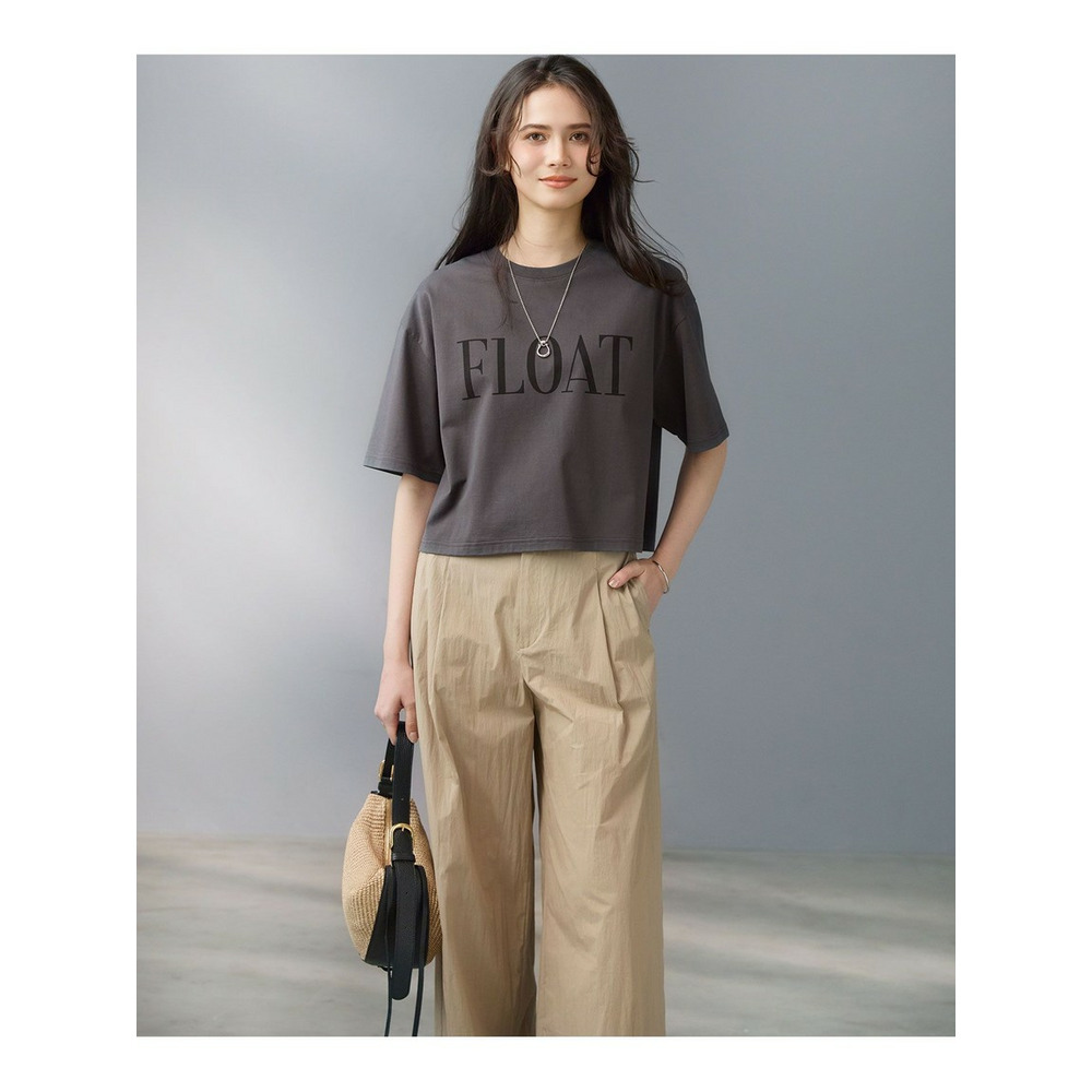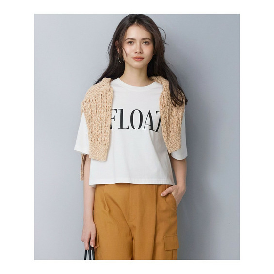 クロップド丈とゆったりとした肘上丈の袖のバランスが絶妙なTシャツです。袖を折り返してニュアンスをプラスした着こなしもおすすめ。C/Nタイプライターのワイドパンツやエアリースカートなど、ボリュームのあるボトムスと合わせることで、トレンド感のあるスタイリングをお楽しみいただけます。胸元には、英語で「漂う、流れるように生きる」を意味する「FLOAT」の大きめロゴをプリントし、印象的なアクセントに仕上げました。カラーは、ベーシックなオフホワイト×ブラック(#001)、鮮やかなタンジェリン×オフホワイト(#020)、柔らかなラベンダー×オフホワイト(#082)、こなれ感のあるスチール×ブラック(#004)の4色展開です。