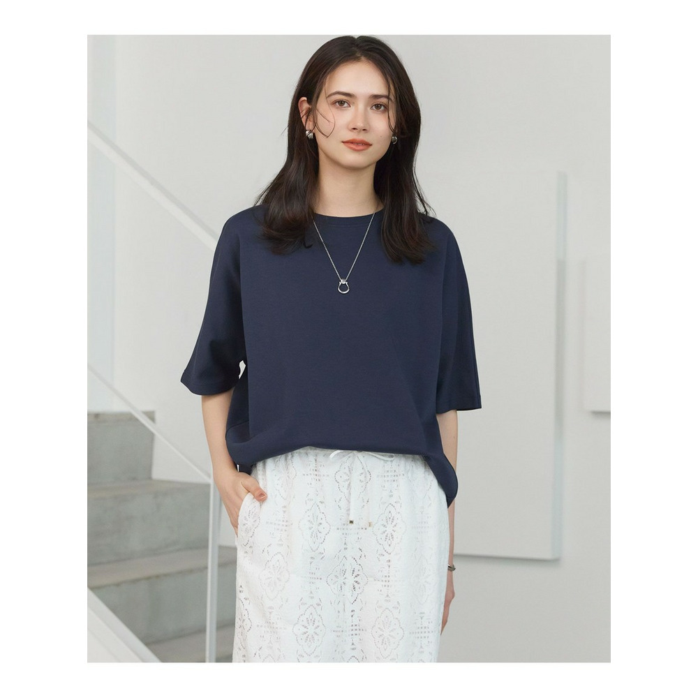 袖下にゆったりとボリュームを持たせた、リラクシーな印象のドルマンスリーブカットソーです。裾に向かっては程よくフィットするデザインで、ダンボール素材特有の体から離れる立体的なシルエットが、着こなしに抜け感をプラスします。デニムなどのパンツ合わせはもちろん、エアリーフレアスカートとのスタイリングもおすすめ。ウエストやヒップ周りを自然にカバーしつつ、今年らしいバランスのスタイリングをお楽しみいただけます。カラーは、柔らかなアイボリー(#002)、明るく上品なライトグレー(#003)、落ち着きのあるシックなグレイッシュネイビー(#074)の3色展開です。