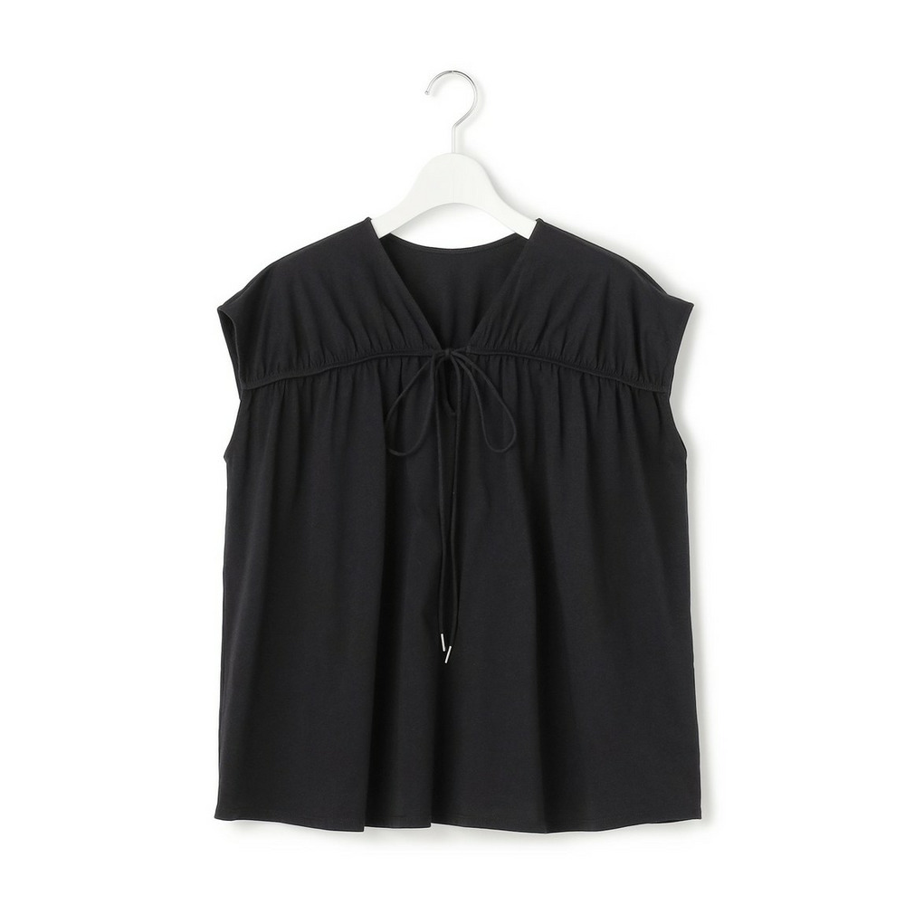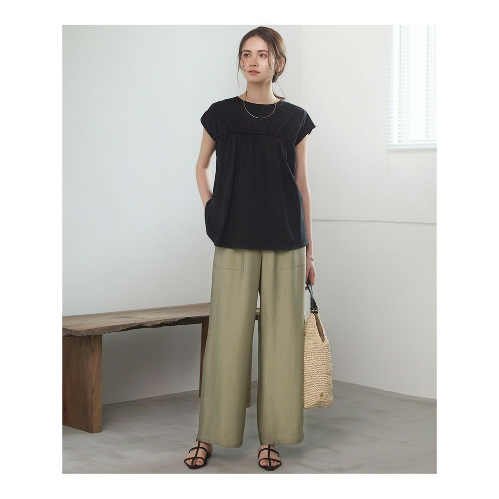 ■素材 ナチュラルで毛羽の少ないコットンを、度目を詰めて編み上げたしなやかなカットソー素材を使用しています。程よい薄さの生地感なので、たっぷりとギャザーを入れても重たくならず、軽やかな印象に仕上がっています。ご自宅の洗濯機でお洗濯が可能なお手入れのしやすさもデイリーユースに嬉しいポイントです。