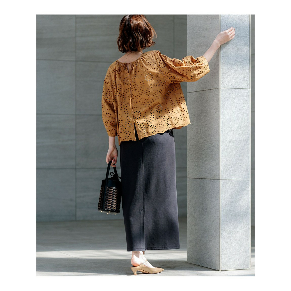 ナチュラルな風合いが魅力のコットン素材に、23区オリジナルのカットワーク刺繍(生地を切り抜いて模様を作る刺繍)を施しました。 何度も調整を重ねて表現された繊細な柄が、甘くなりすぎず大人っぽい表情を作り出しています。 天然素材ならではの柔らかい肌触りと優れた通気性で、快適な着心地を叶えます。