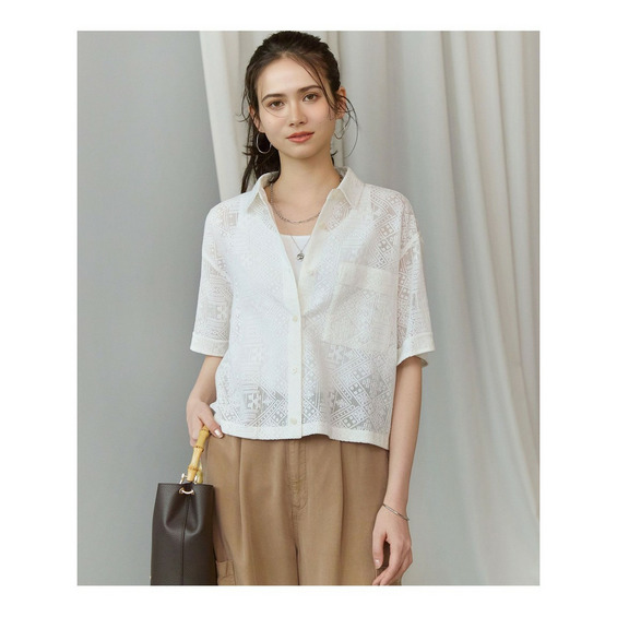 【SLOW/一部店舗限定】モチーフレース 半袖 シャツ