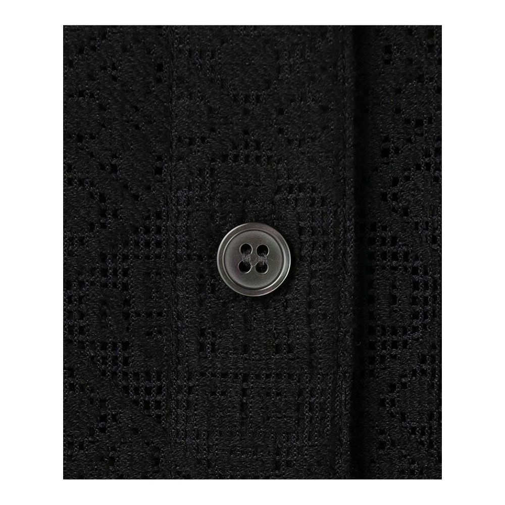 トレンドのレース素材を使用したハーフスリーブシャツです。カジュアルな質感でありながらも、繊細な透け感のあるレースが大人っぽい雰囲気を演出します。フロントボタンを閉めてトップスとして着こなすのはもちろん、軽やかな羽織りとしても活躍する汎用性の高いアイテムです。コンパクトなレングスに仕上げているため、ワイドパンツやボリュームのあるスカートなど、様々なボトムスとバランス良く合わせていただけます。カラーは、爽やかなオフホワイト(#001)と、シックなブラック(#005)の2色展開です。