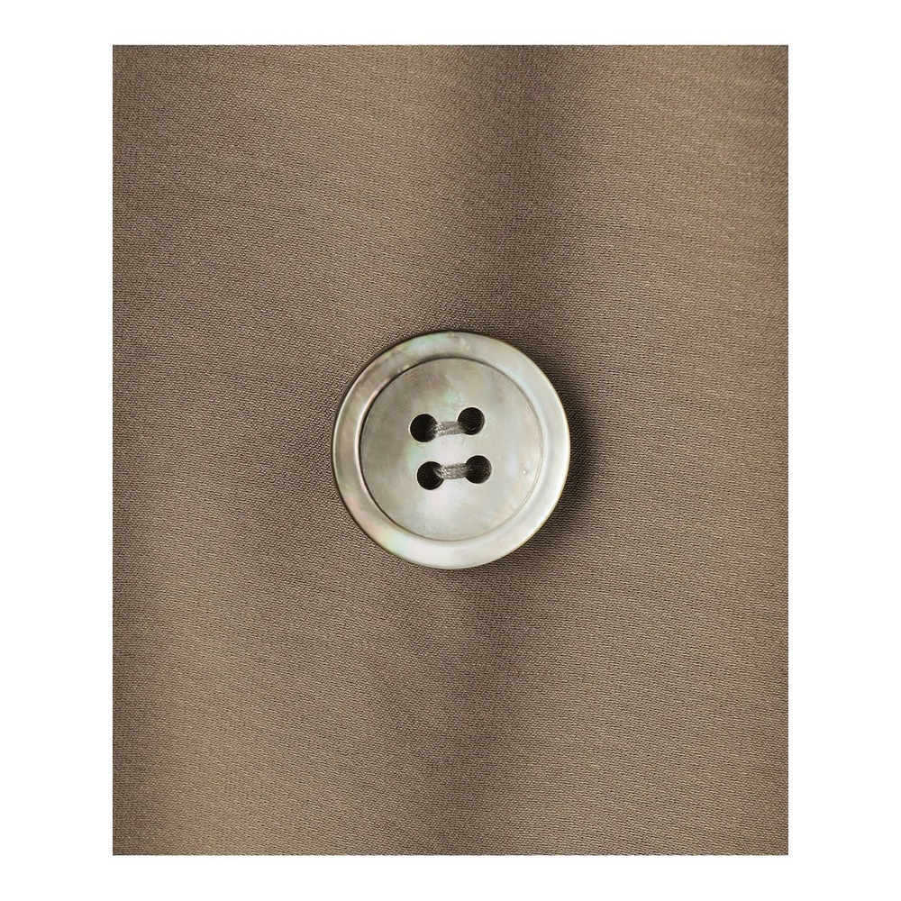 極細のナイロン糸による上品な透明感と適度なハリ感に、レーヨン特有の柔らかくしなやかなドレープ性を掛け合わせた、今シーズンらしい軽やかな素材を使用しています。天然素材のようなナチュラルな風合いと、合成繊維ならではの扱いやすさを兼ね備えた絶妙な質感が魅力です。肌に触れるとひんやりとする「接触冷感」機能と、汗をかいても乾きやすい「速乾性」を備えており、暑い季節も快適にご着用いただけます。