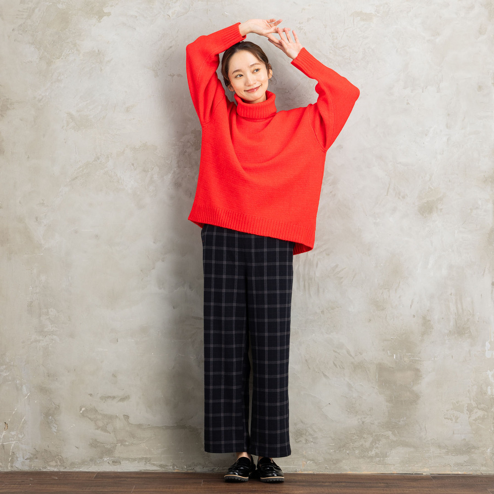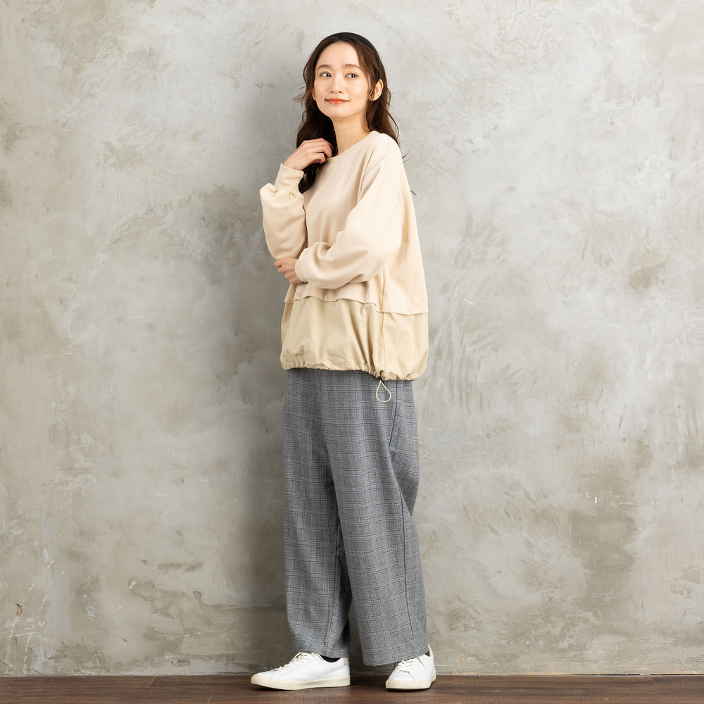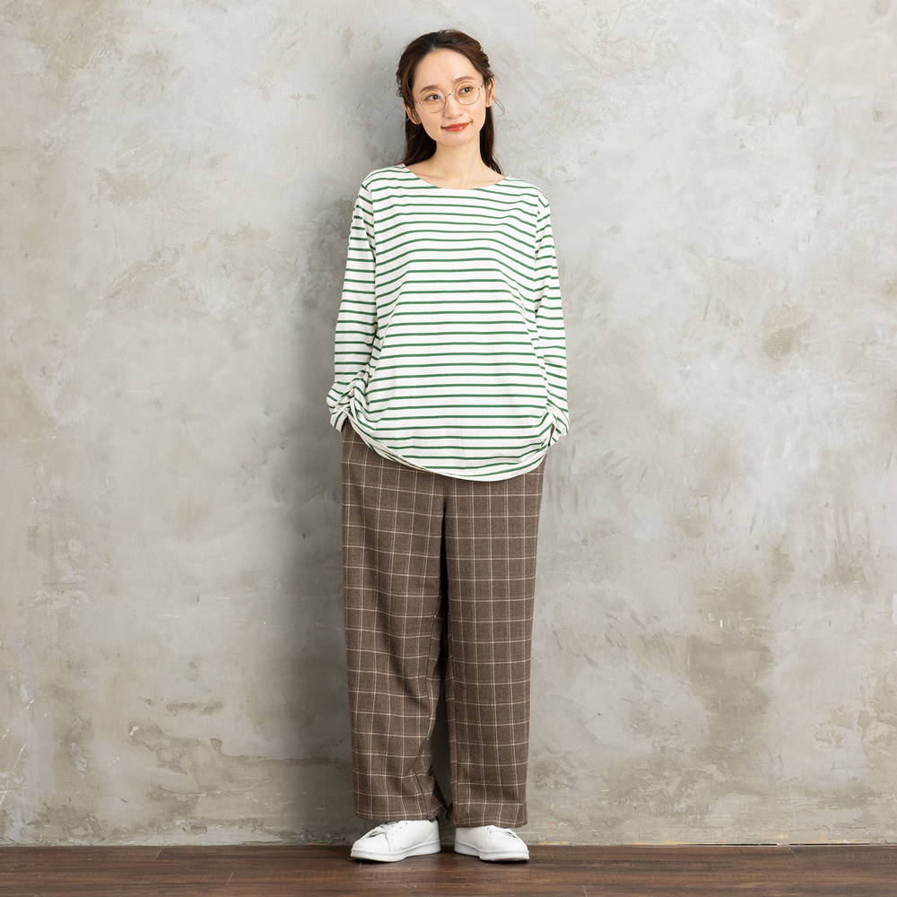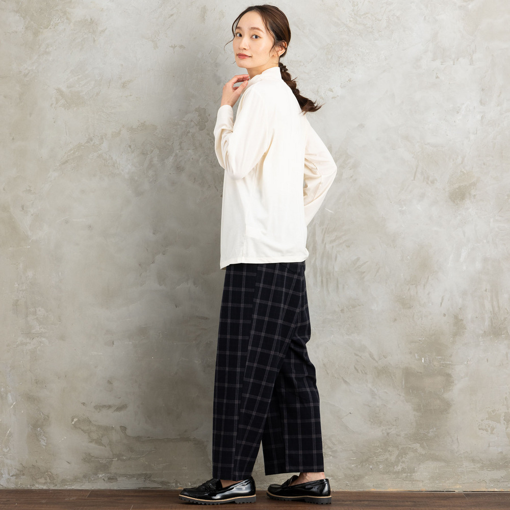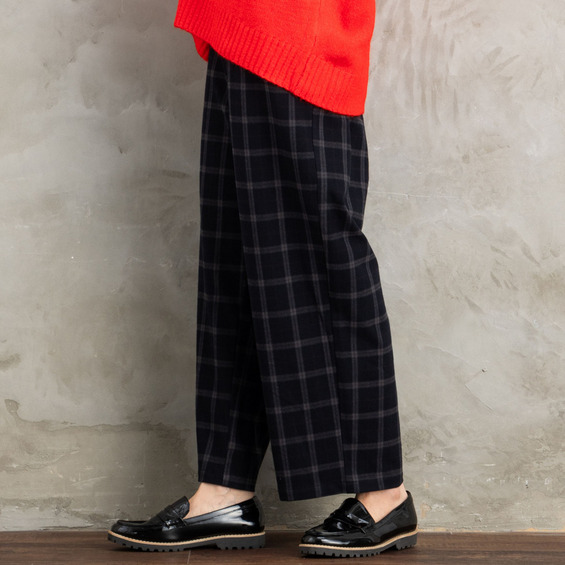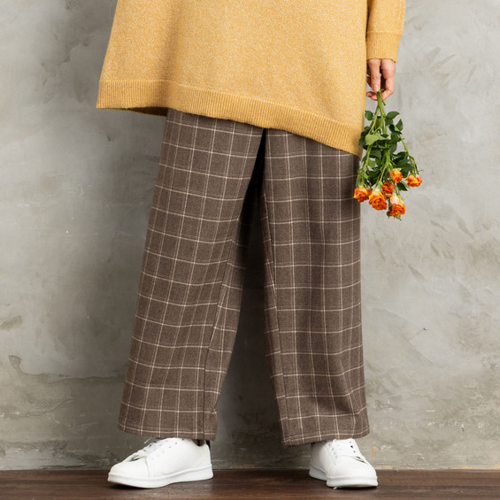 1枚で秋冬らしい雰囲気に仕上がる両面起毛セミワイドパンツ。