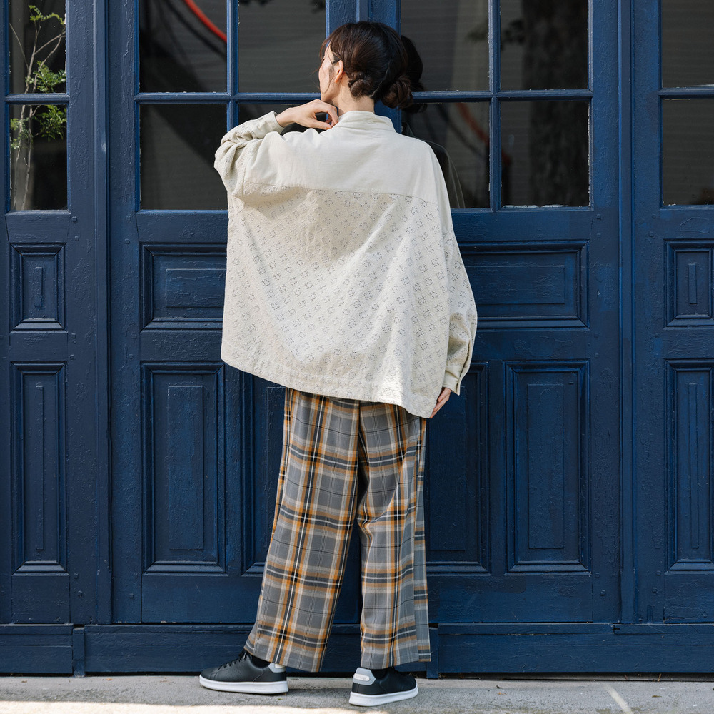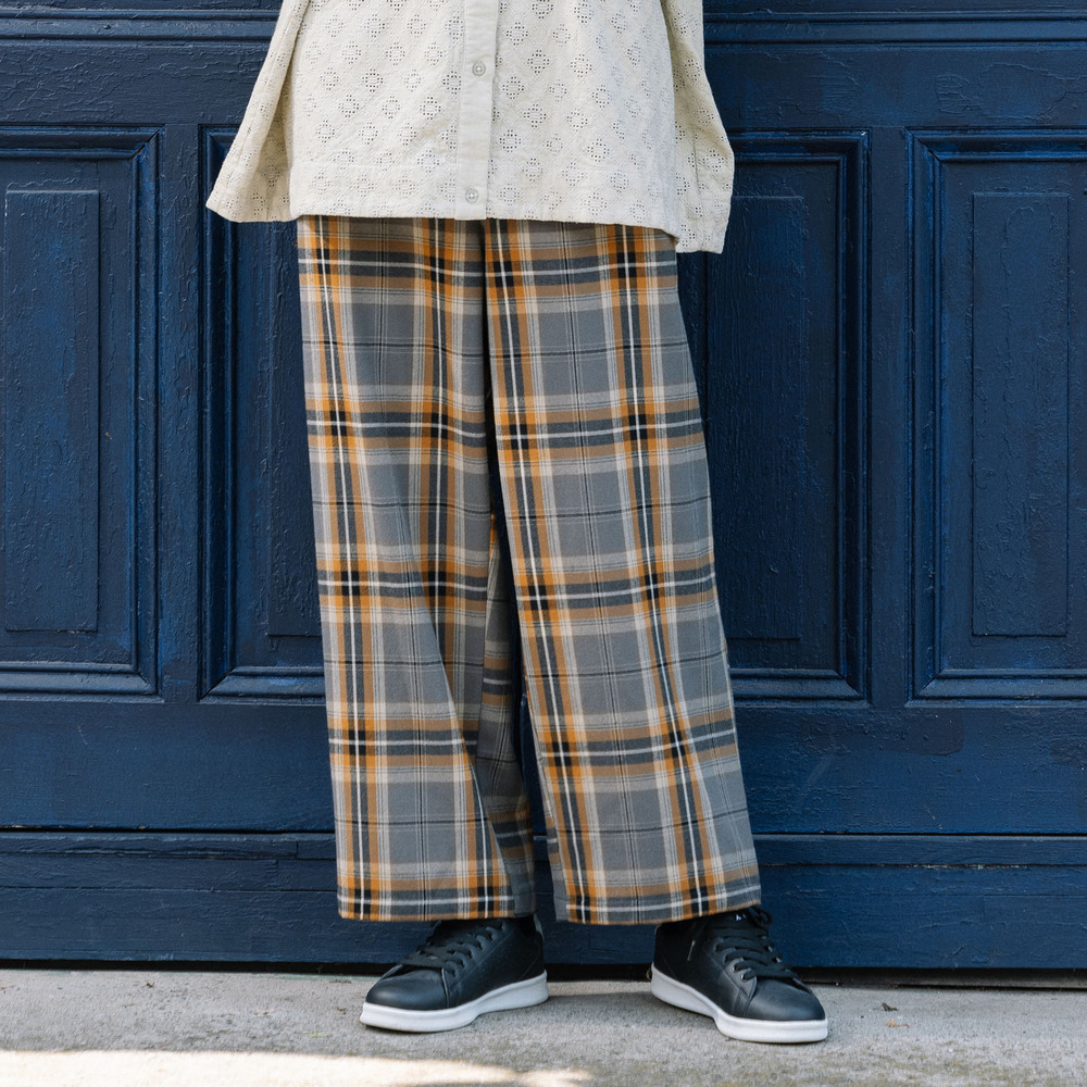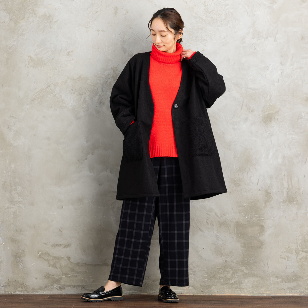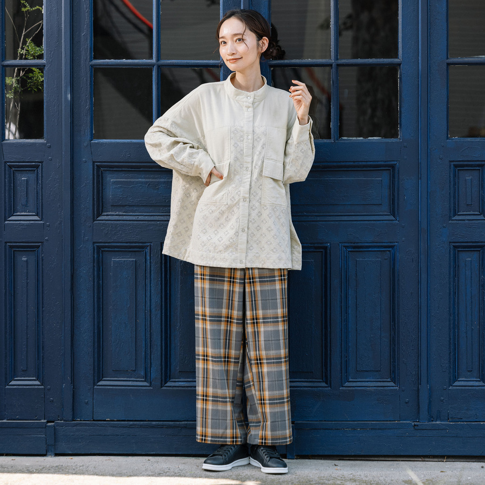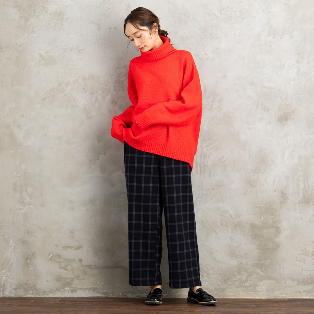 1枚で秋冬らしい雰囲気に仕上がる両面起毛セミワイドパンツ。