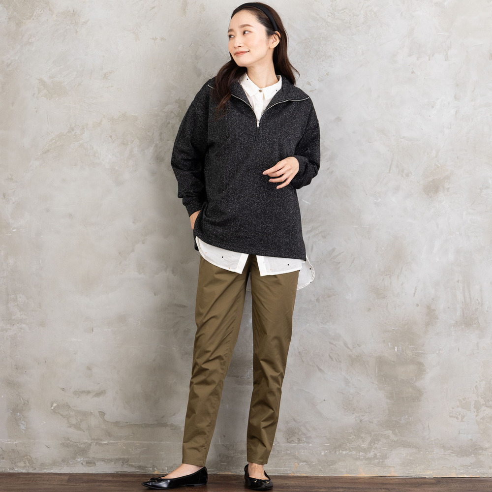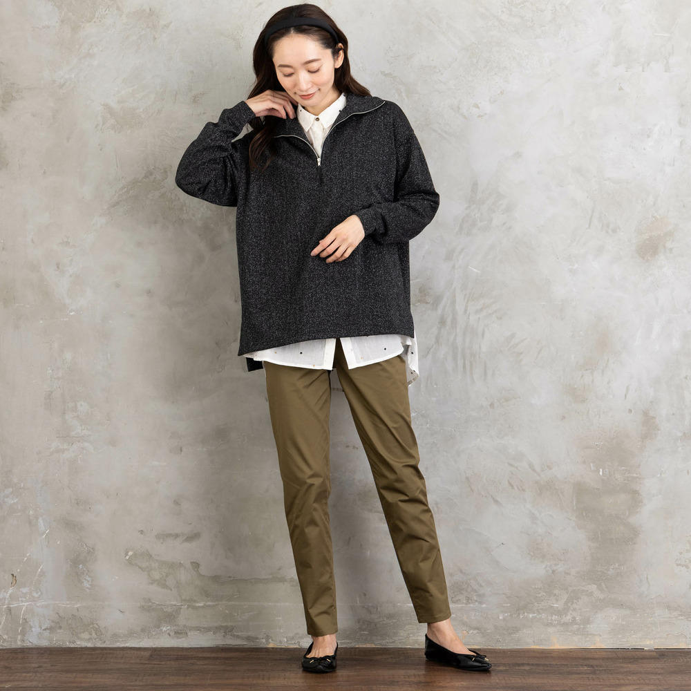 ほどよい光沢感とくたっとした落ち感素材で、リラックス感がありながらも上品な印象に仕上がります。