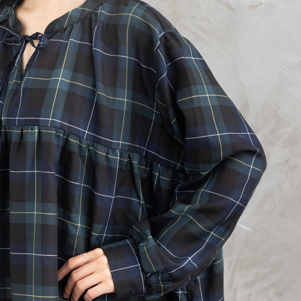 ふんわりとしたギャザーと優しいチェック柄が、大人のナチュラルスタイルにぴったりの一枚。