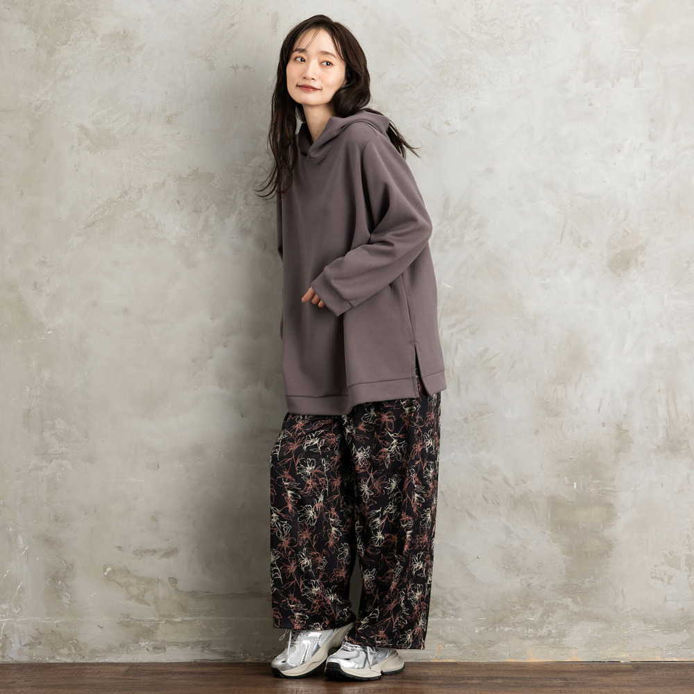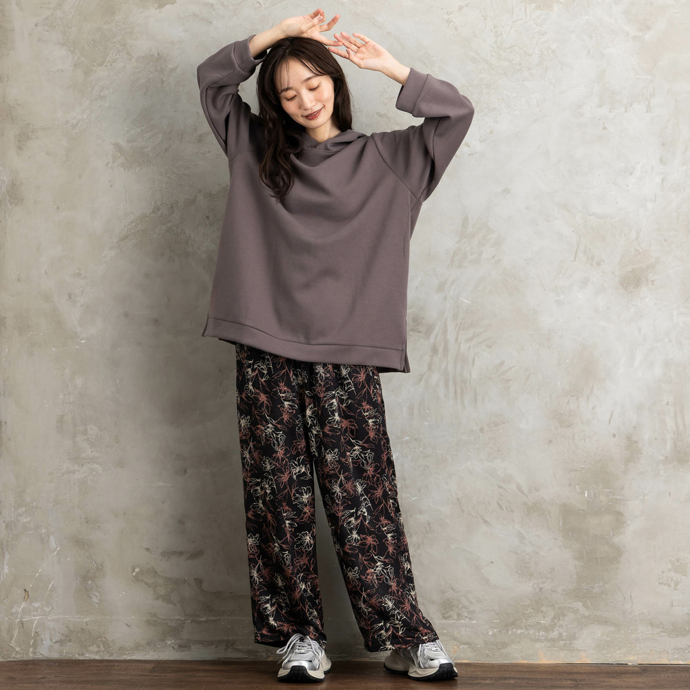 ワイドパンツと合わせてリラックス感のあるスタイルに。
