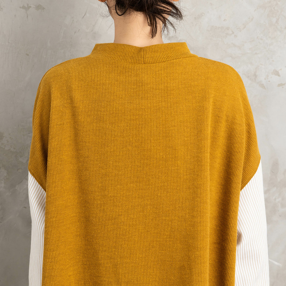 ・異素材コンビで着るだけでレイヤード風コーデが完成