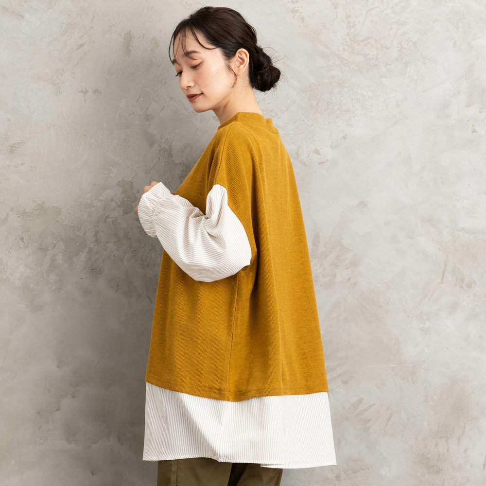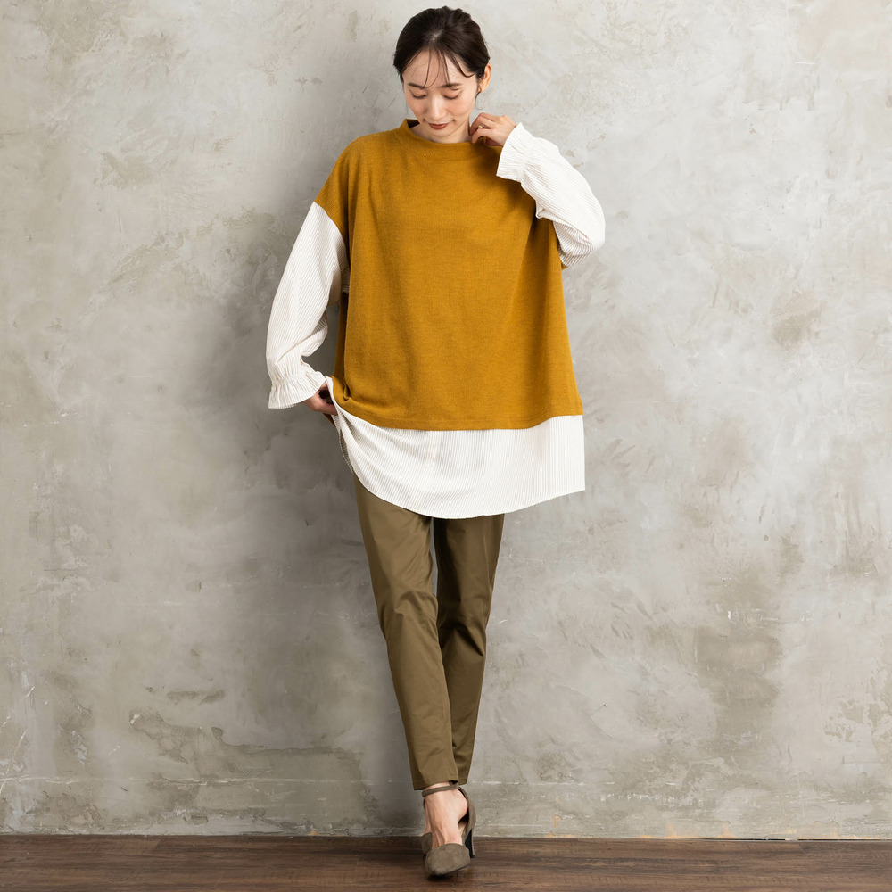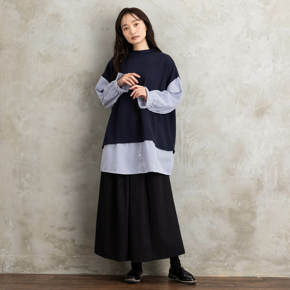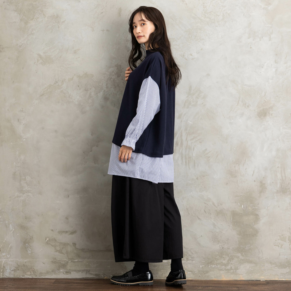 【一枚でレイヤード風に決まる、シャツコンビプルオーバー】
