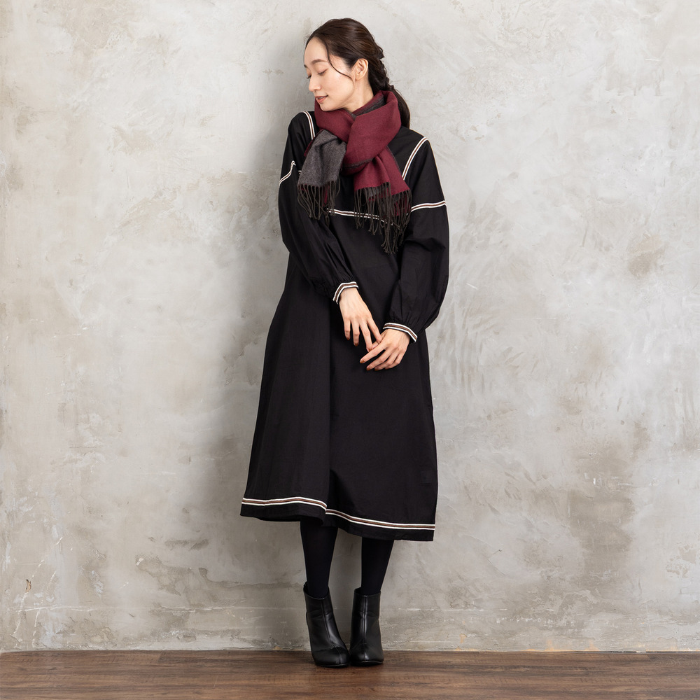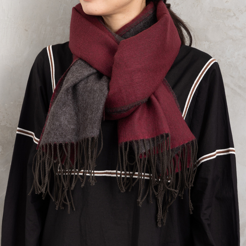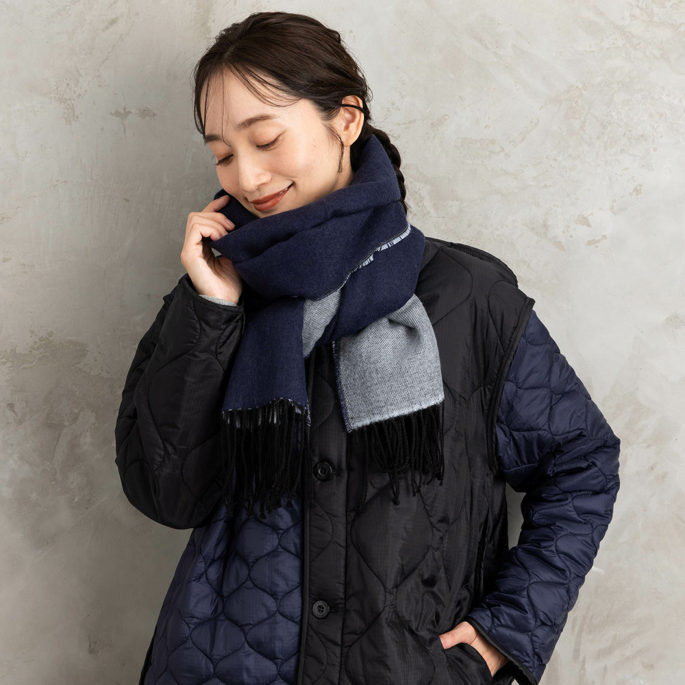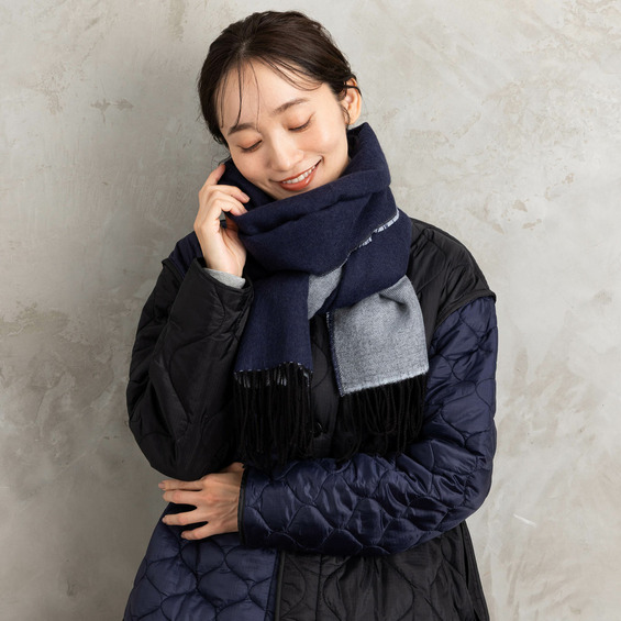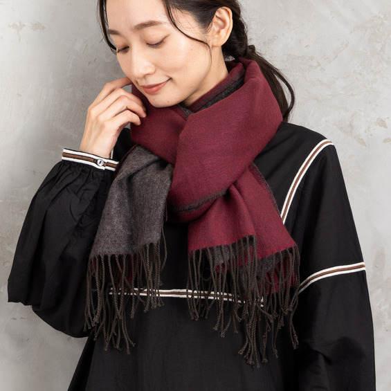 なめらかな肌触りで首元を優しく包み込むリバーシブルストール。