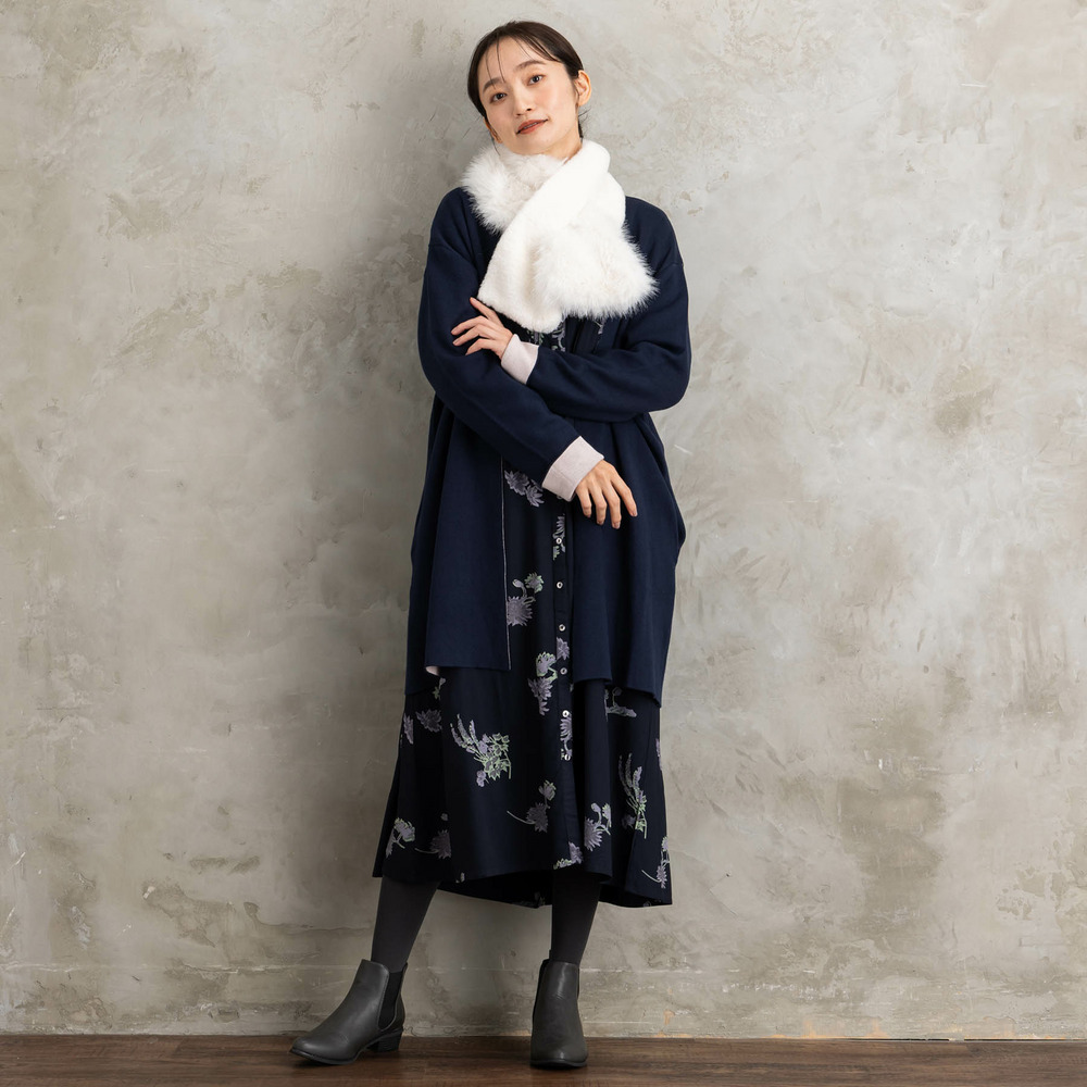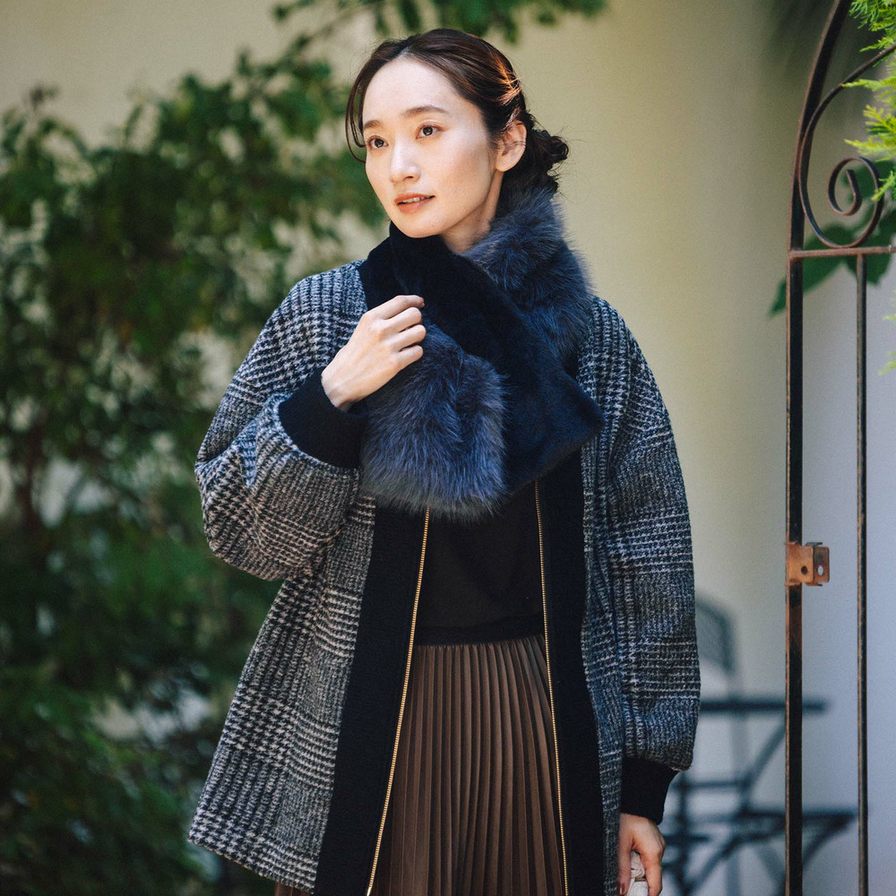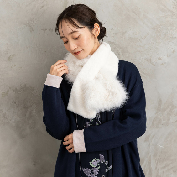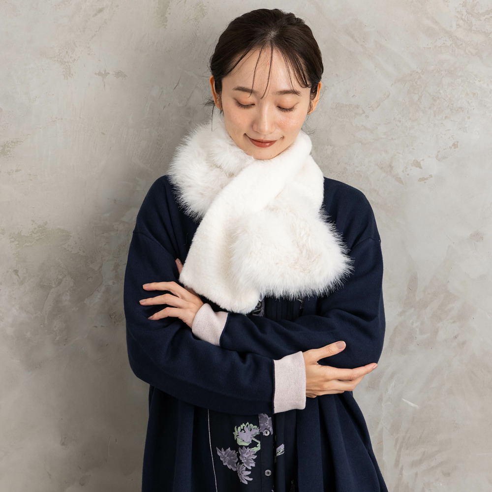 首元に華やかさを添えつつ、防寒性も兼ね備えた大人の冬小物です。