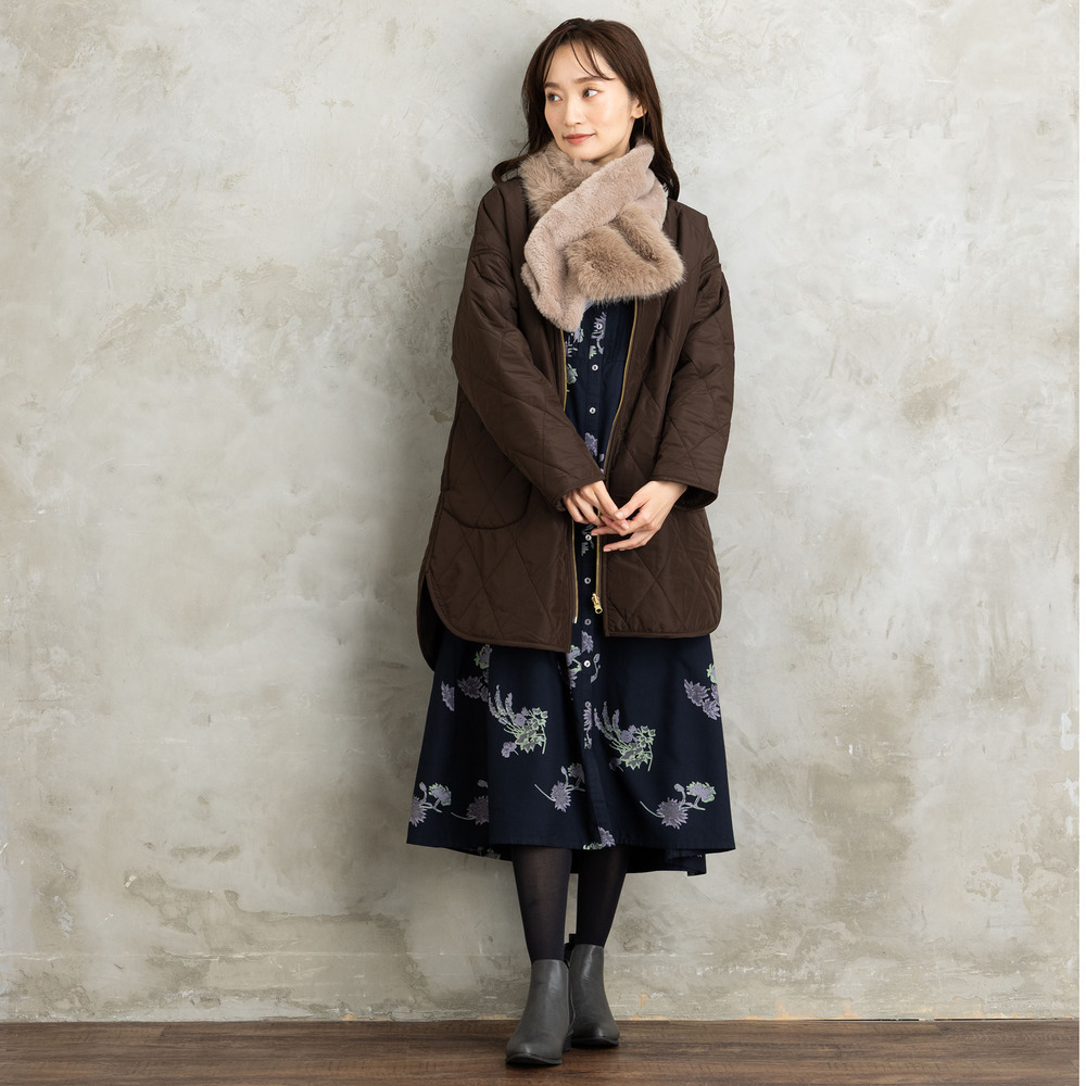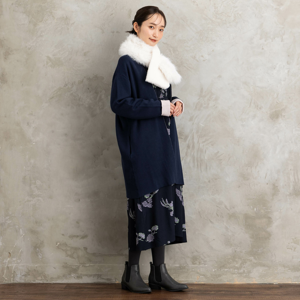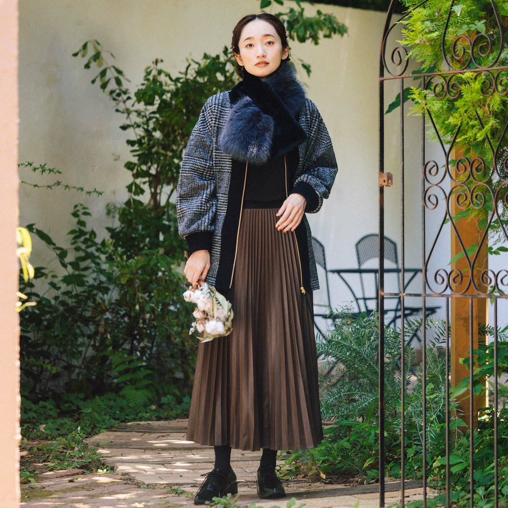 首元に華やかさを添えつつ、防寒性も兼ね備えた大人の冬小物です。