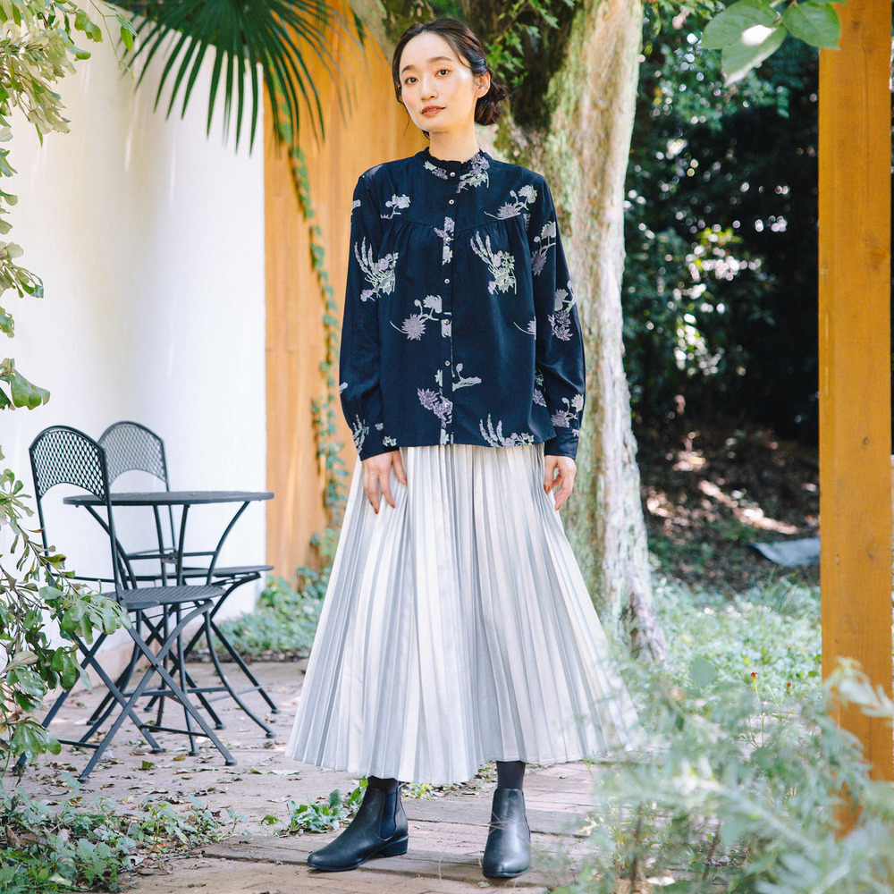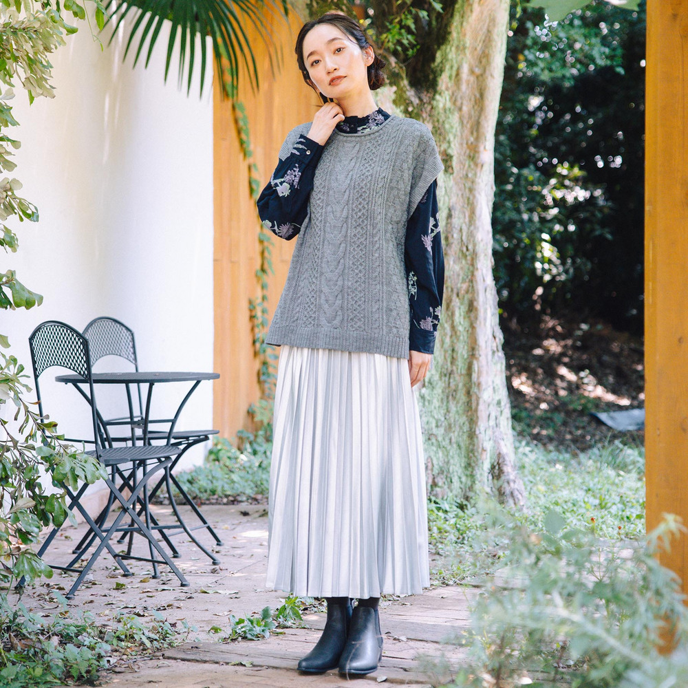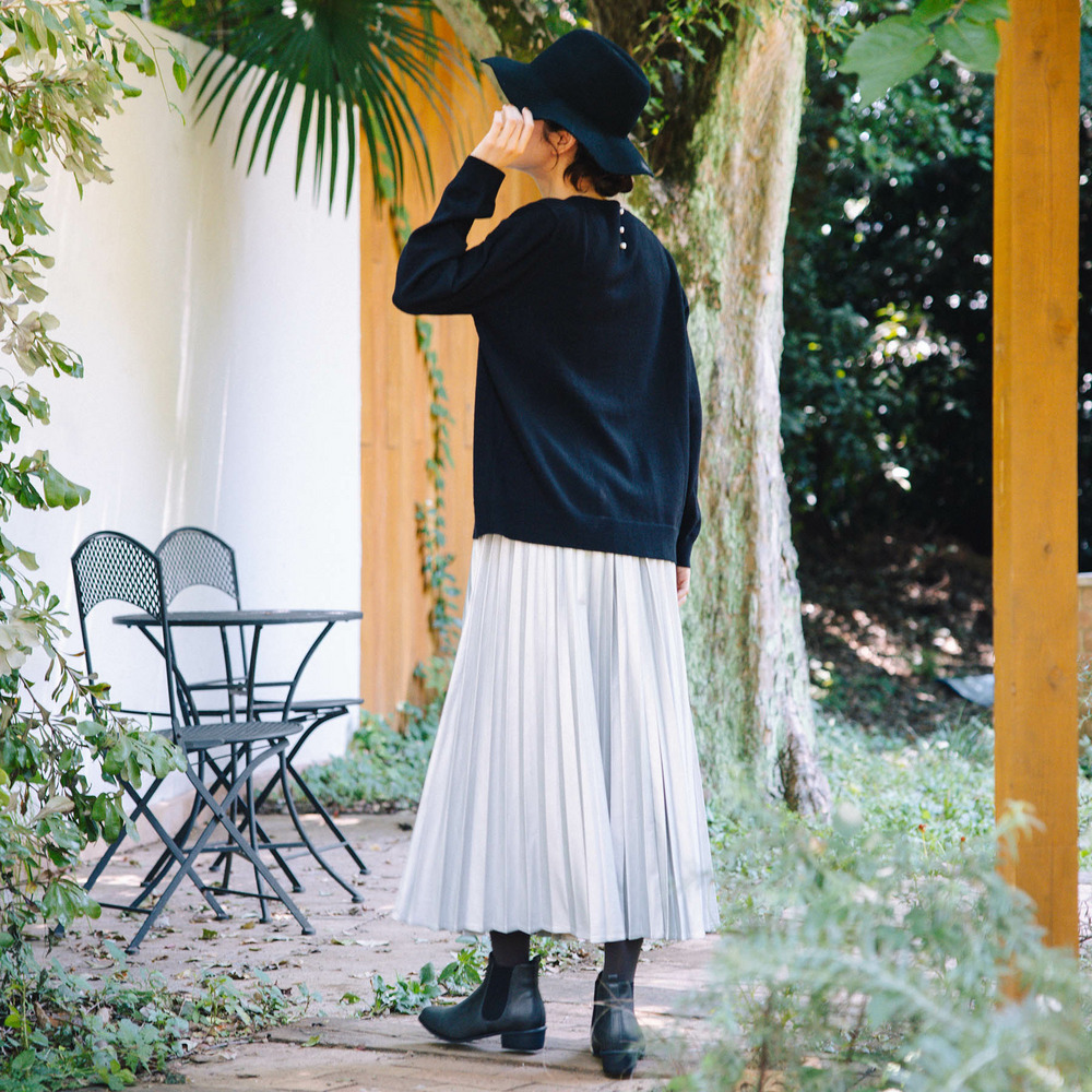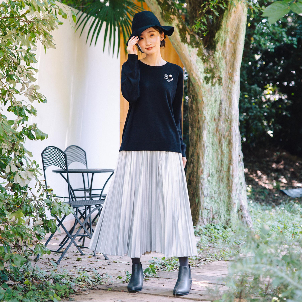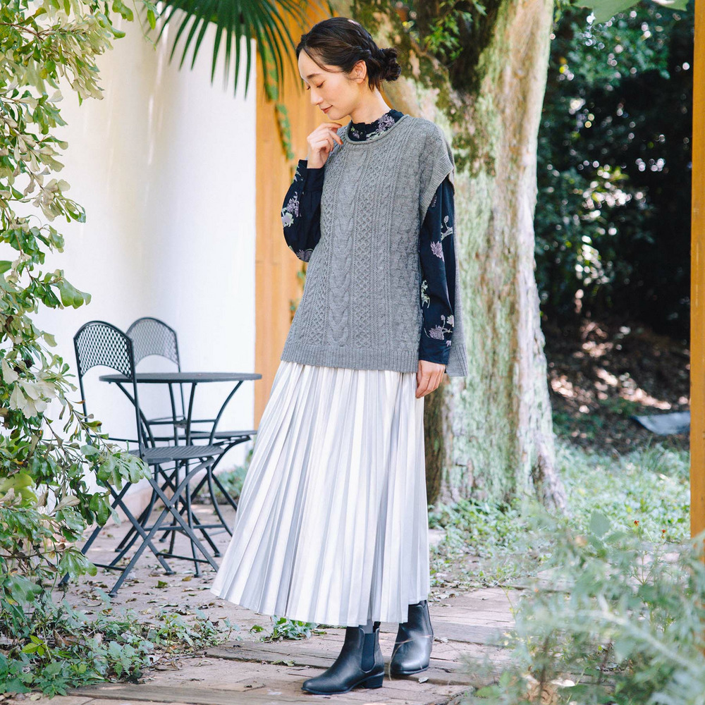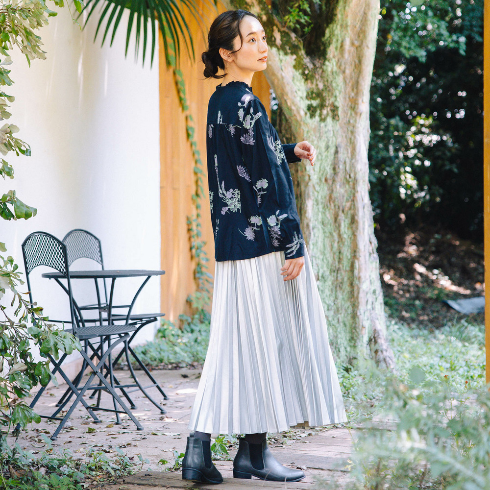 ウエストはゴム仕様で穿きやすく、上品さと快適さを両立した一枚です。