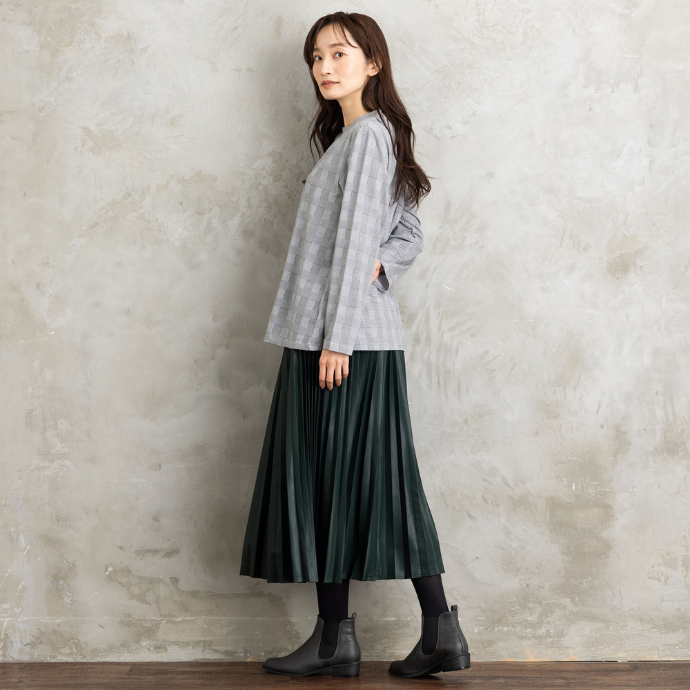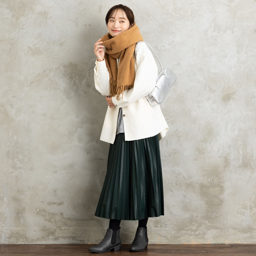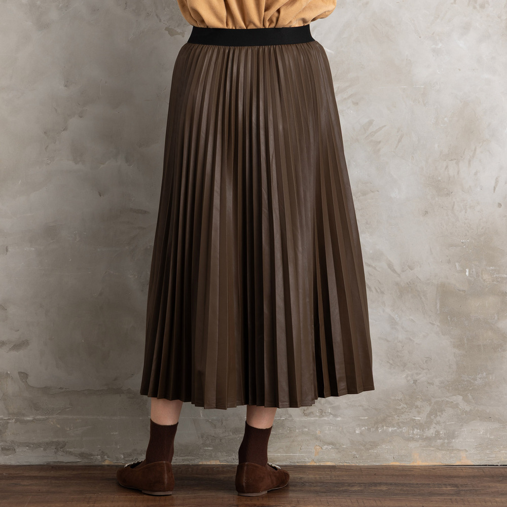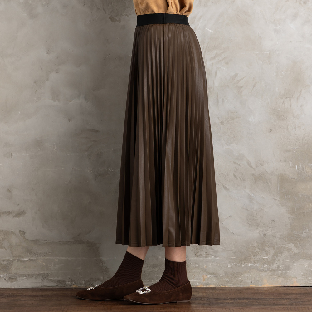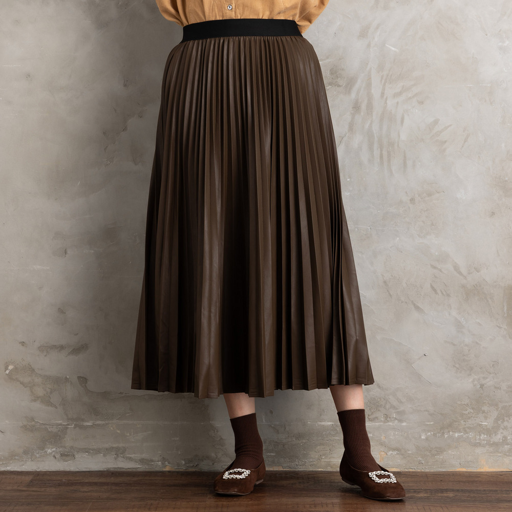 【大人の艶感をまとう、レザーライクプリーツスカート】
