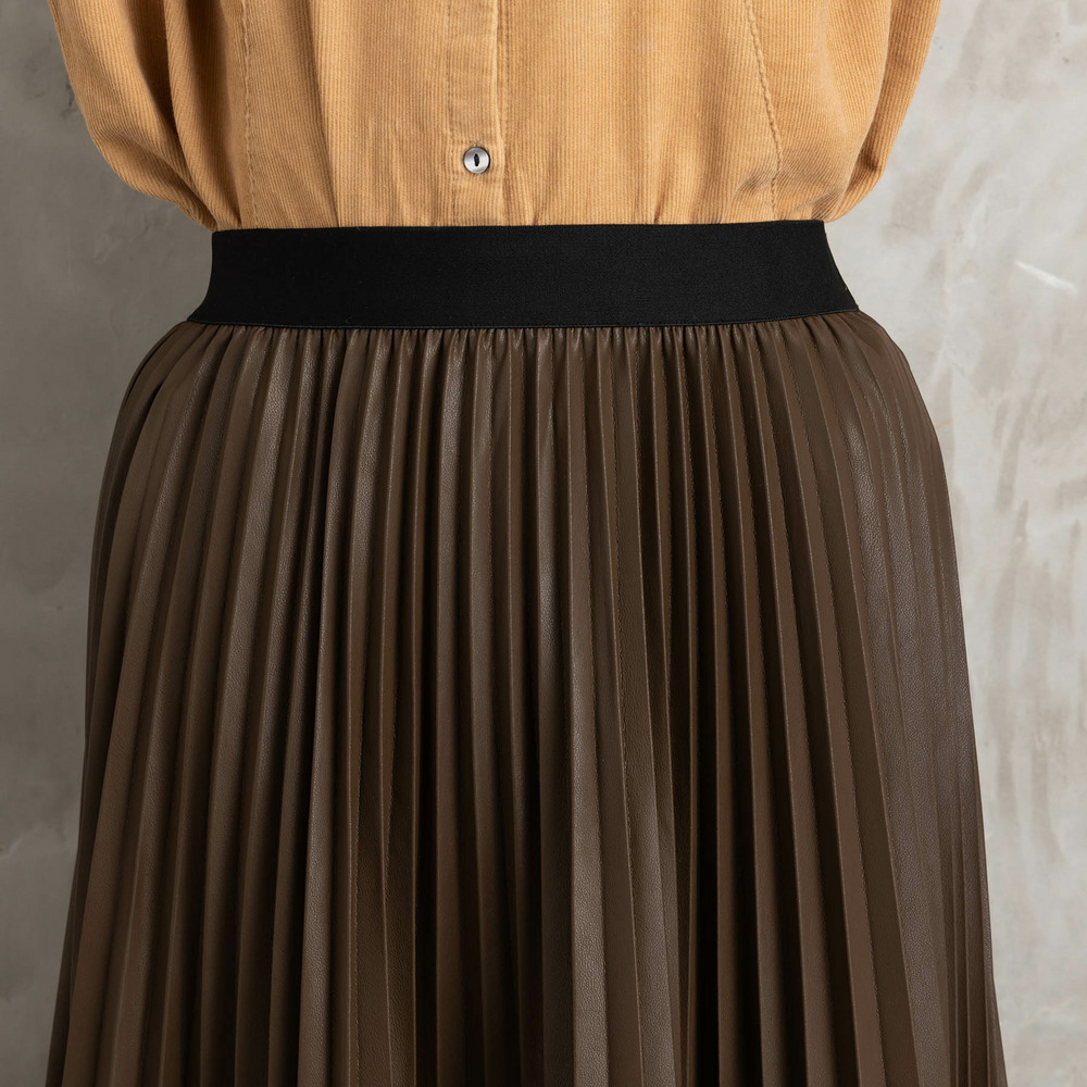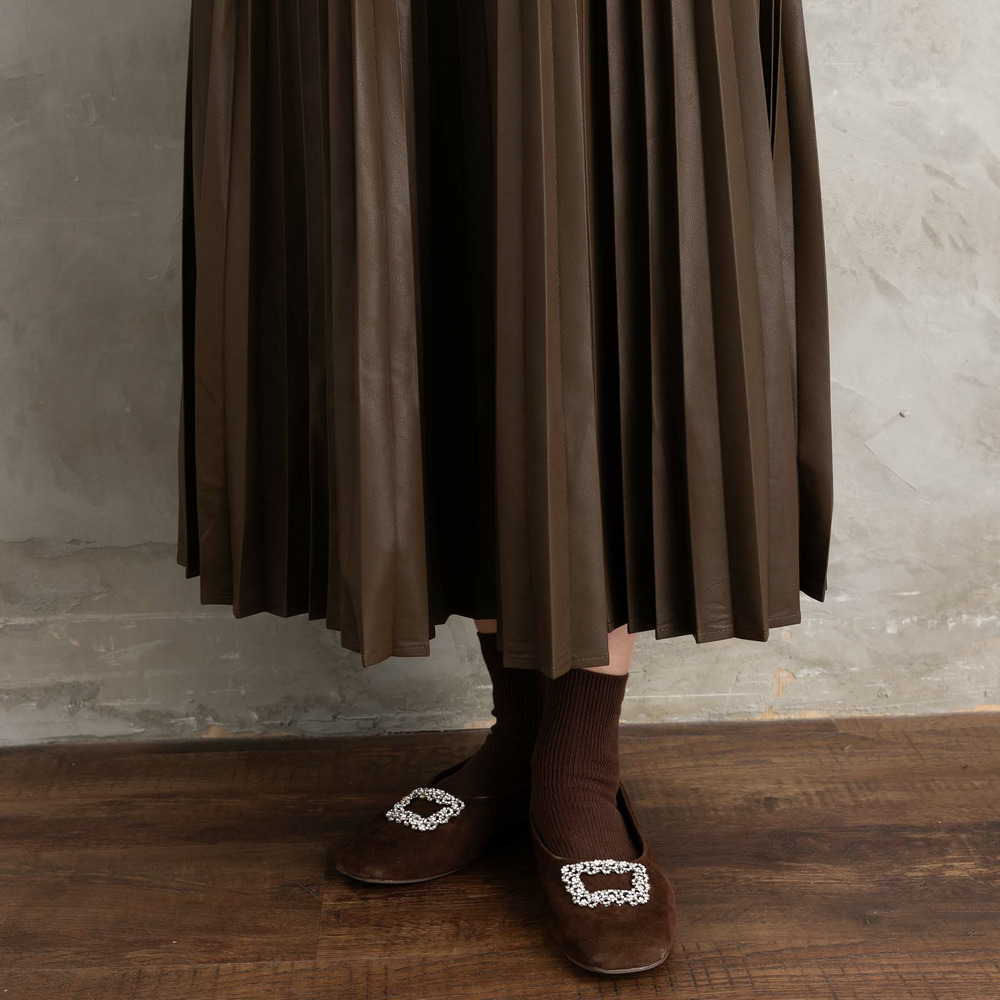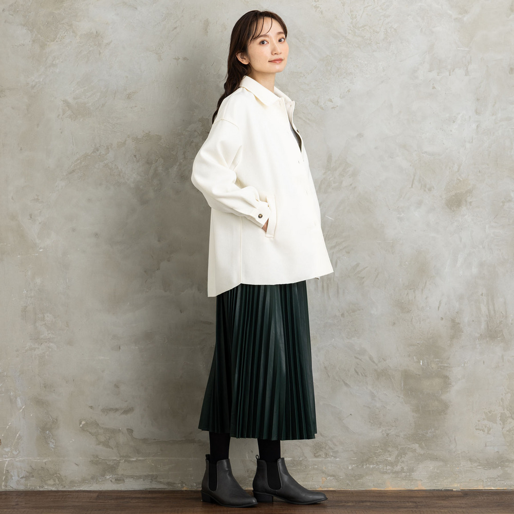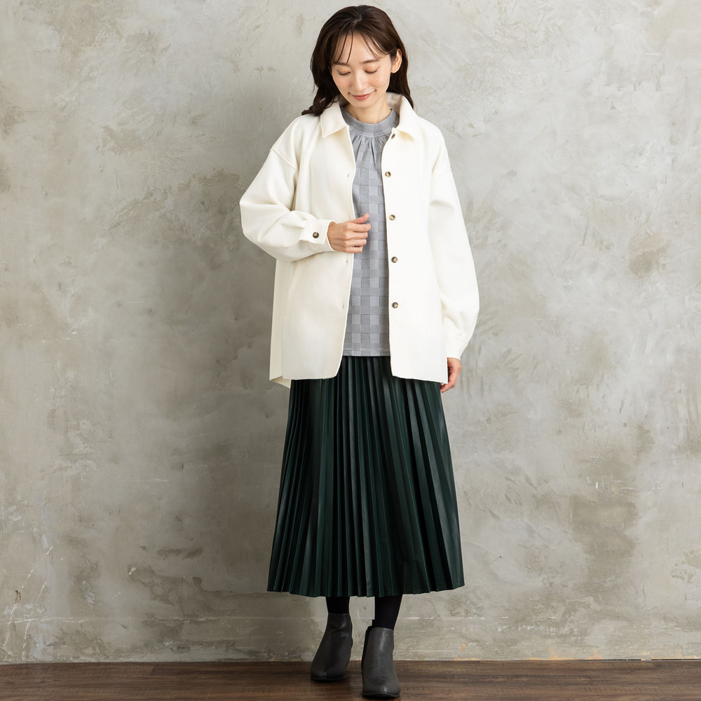 【大人の艶感をまとう、レザーライクプリーツスカート】