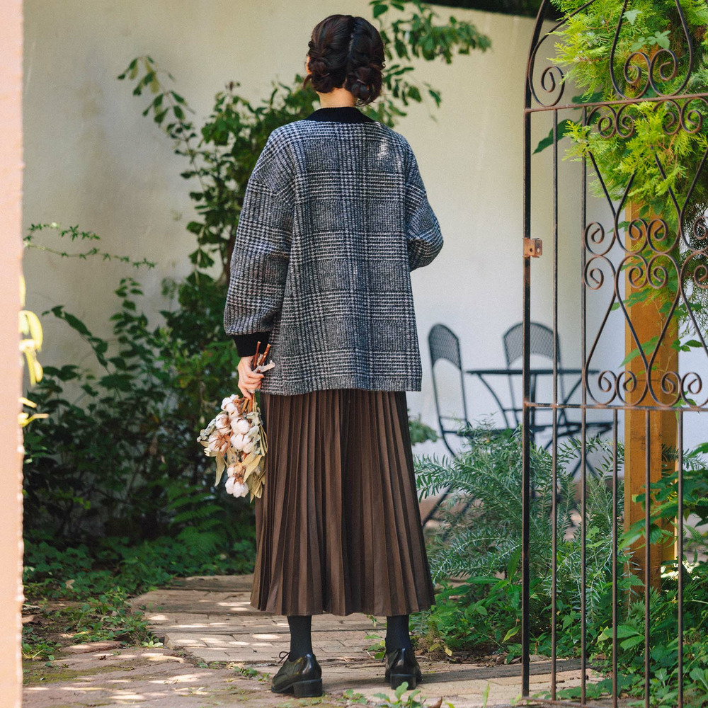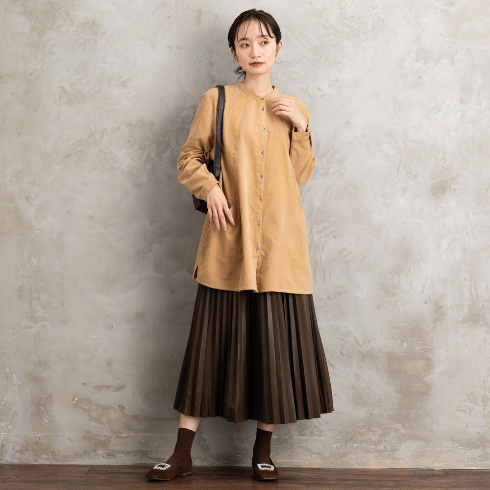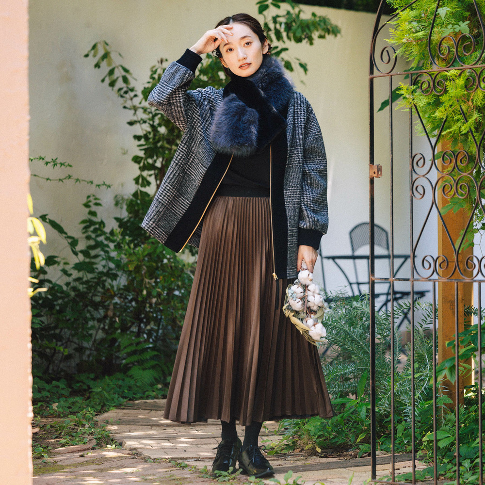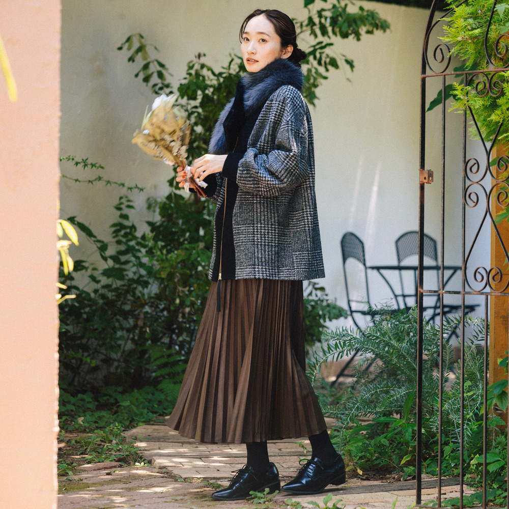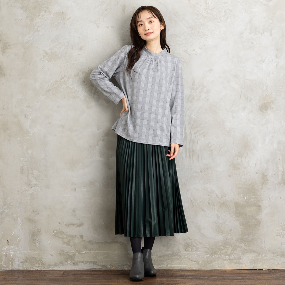 【大人の艶感をまとう、レザーライクプリーツスカート】
