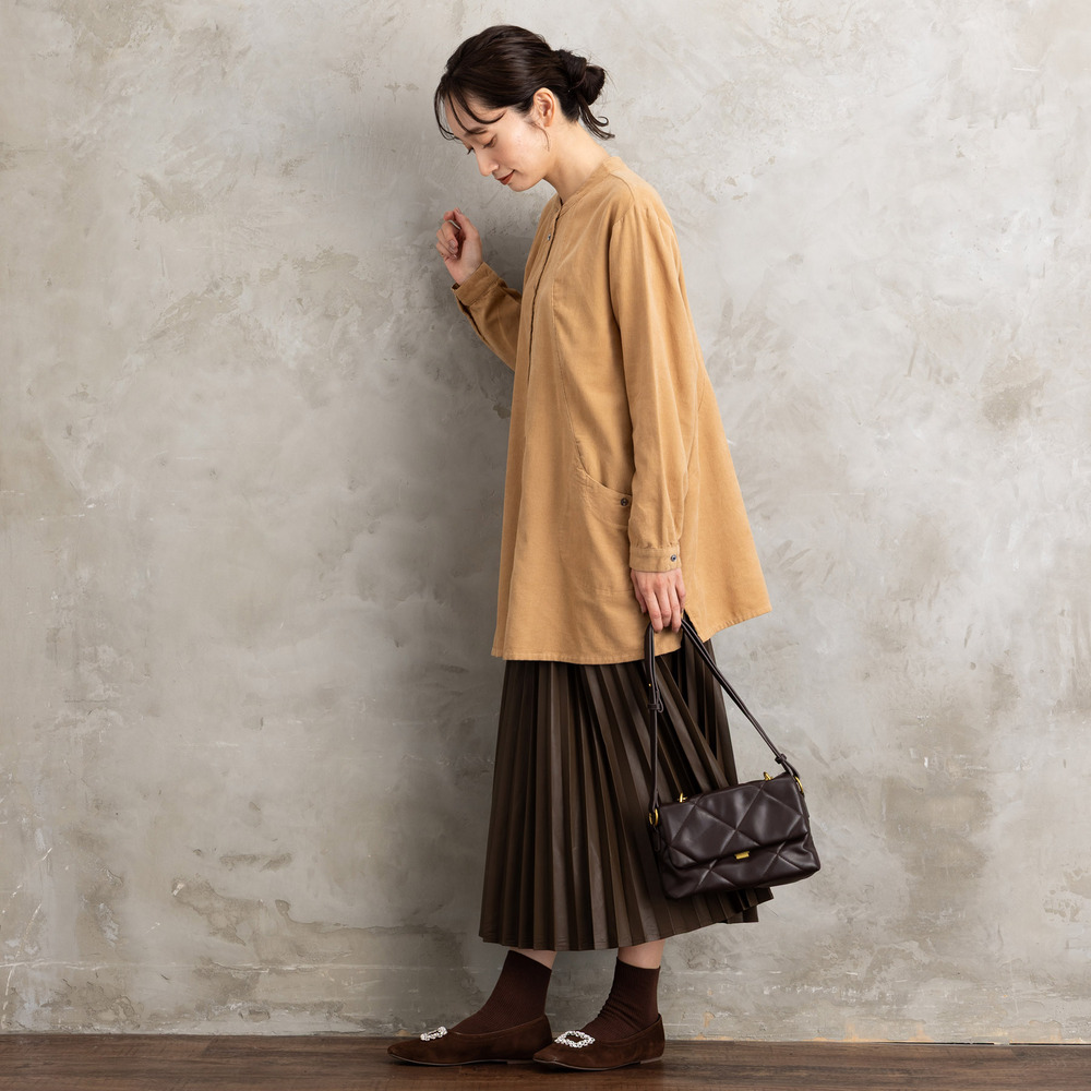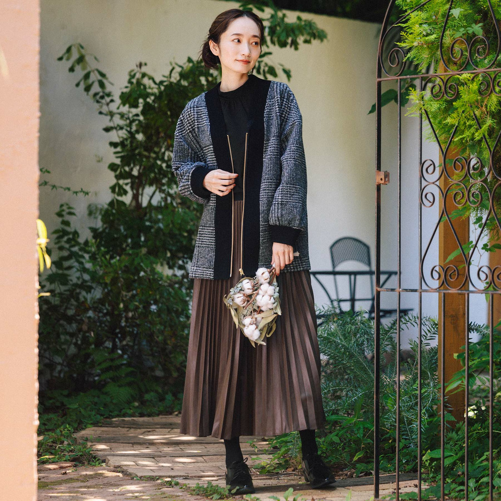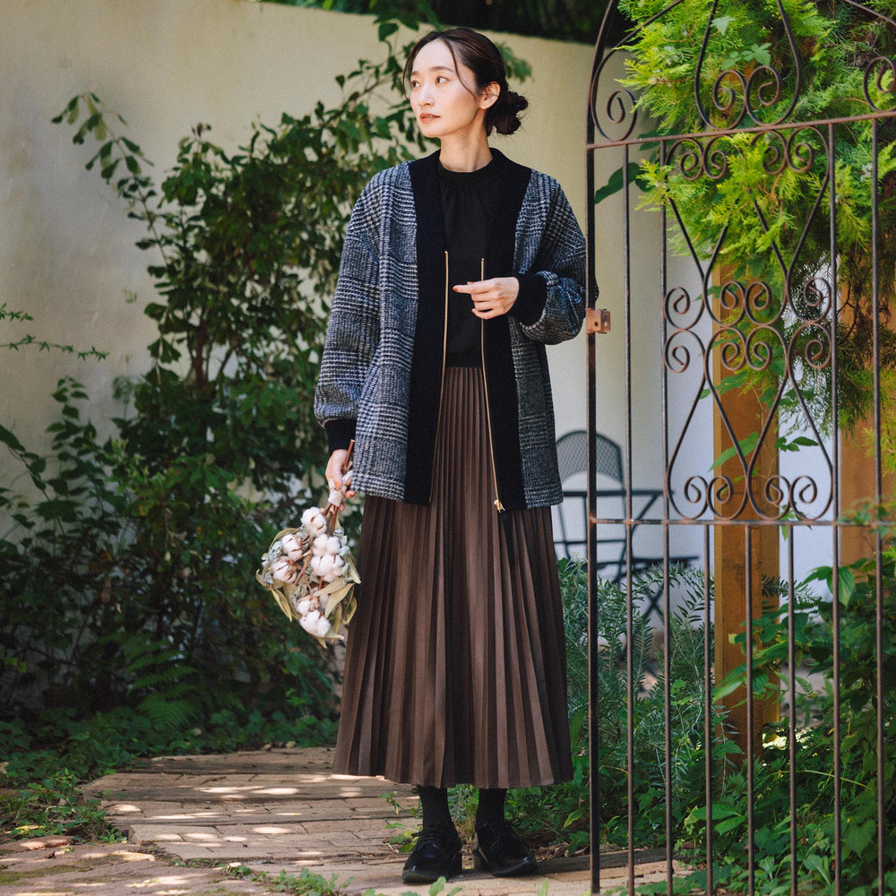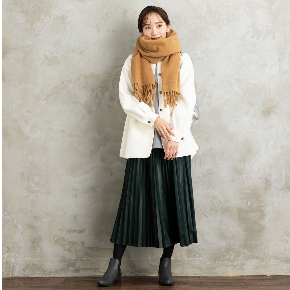 #大きいサイズコーデ #sabstreet #プリーツスカート #レザーライク #秋冬コーデ #大人カジュアル #着回しスカート