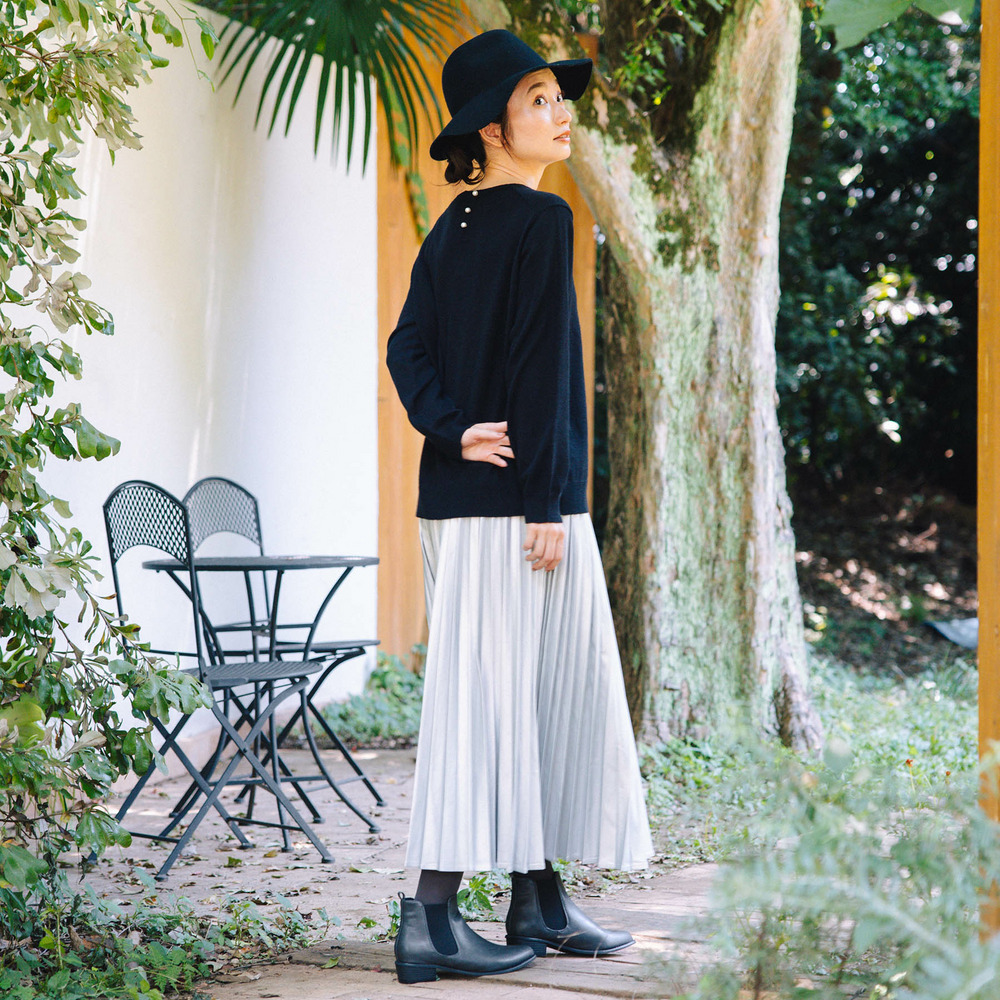 足元はショートブーツで引き締めて、秋冬らしいバランスに。