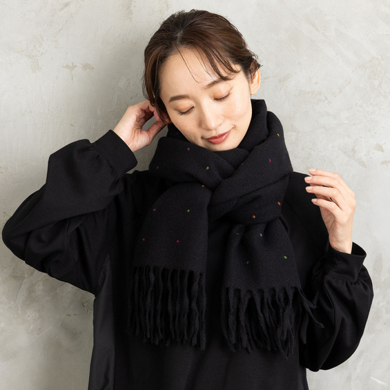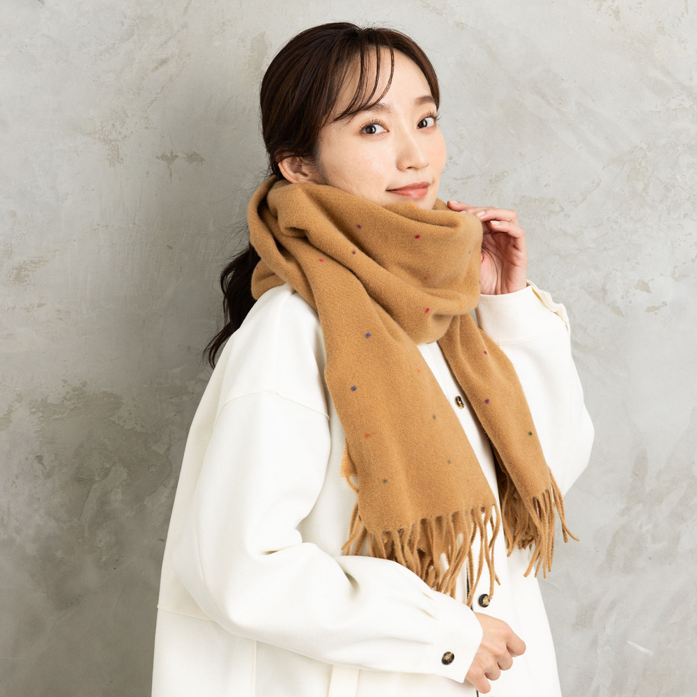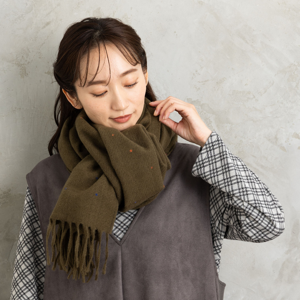 肩掛けやひざ掛けとしても使えるサイズ感で、秋冬のお出かけにぴったり。