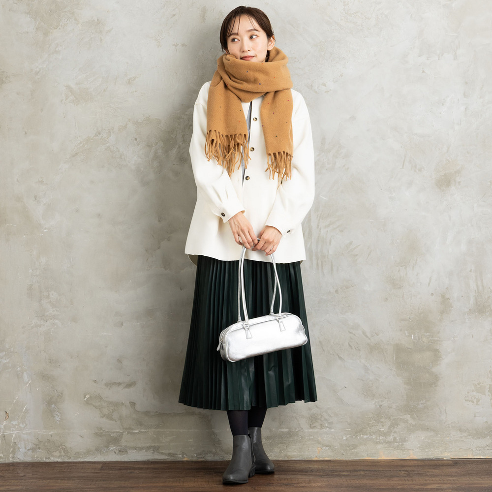 シンプルなコートやニットにプラスして、着こなしのアクセントに。