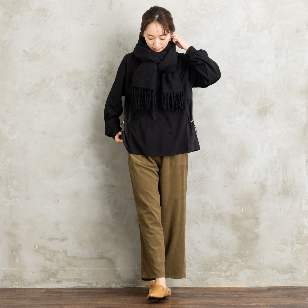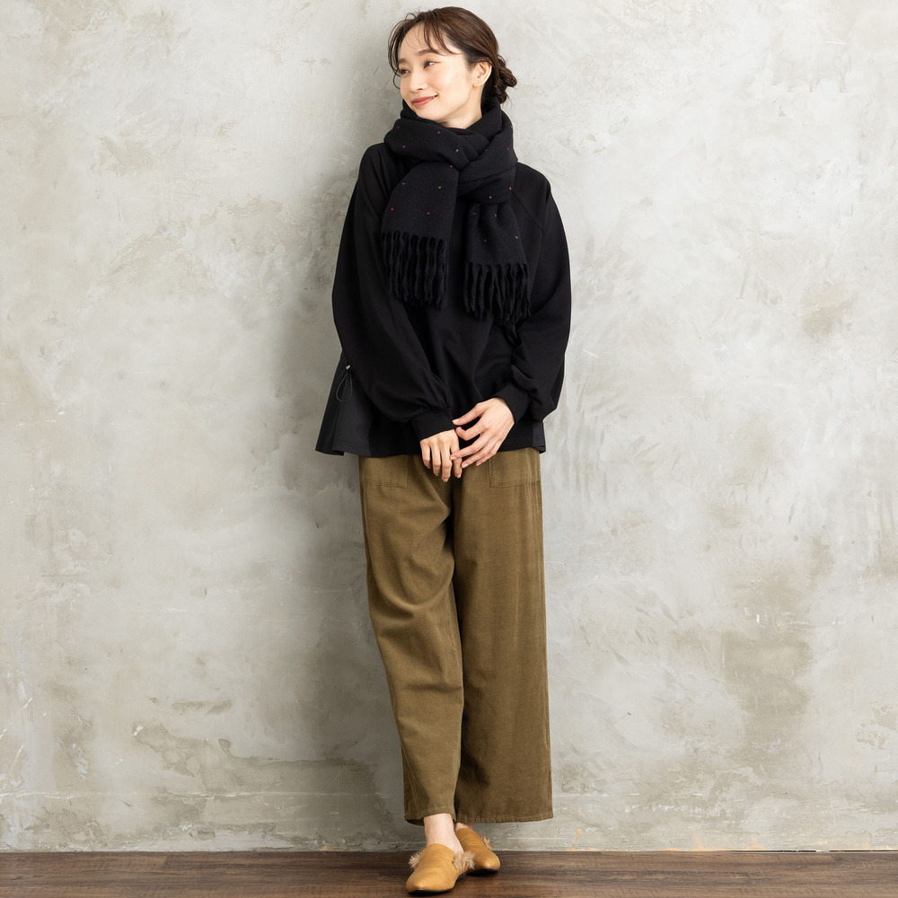 ふんわりと柔らかな素材感で、首元を優しく包み込みます。