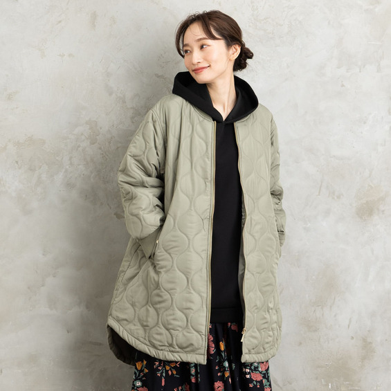波型キルティングがスタイリングに立体感をプラスするロング丈MA-1。