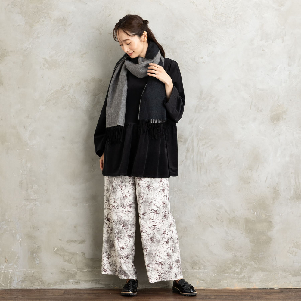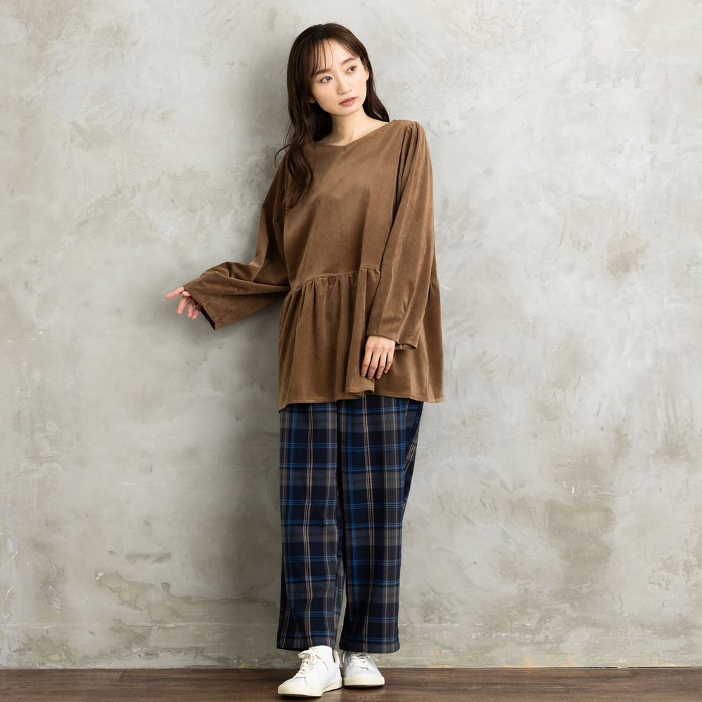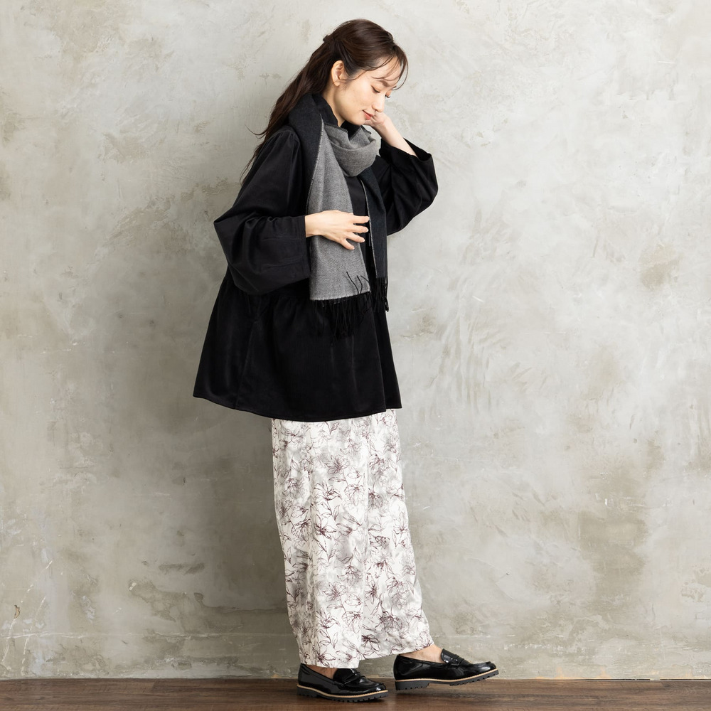 シンプルなボトムと合わせるだけで、秋らしい雰囲気に仕上がります。