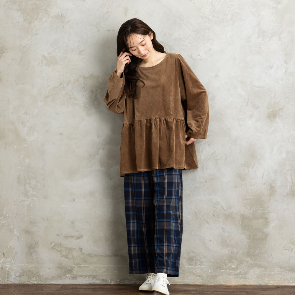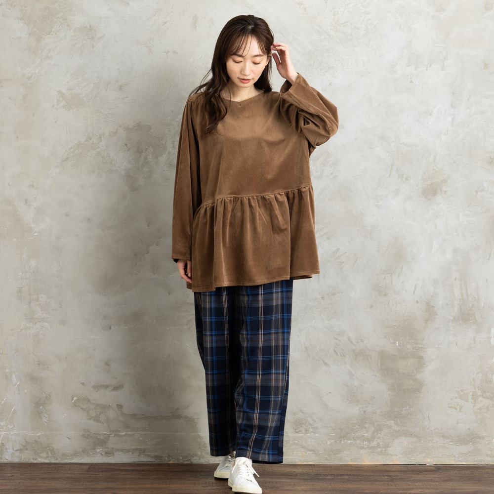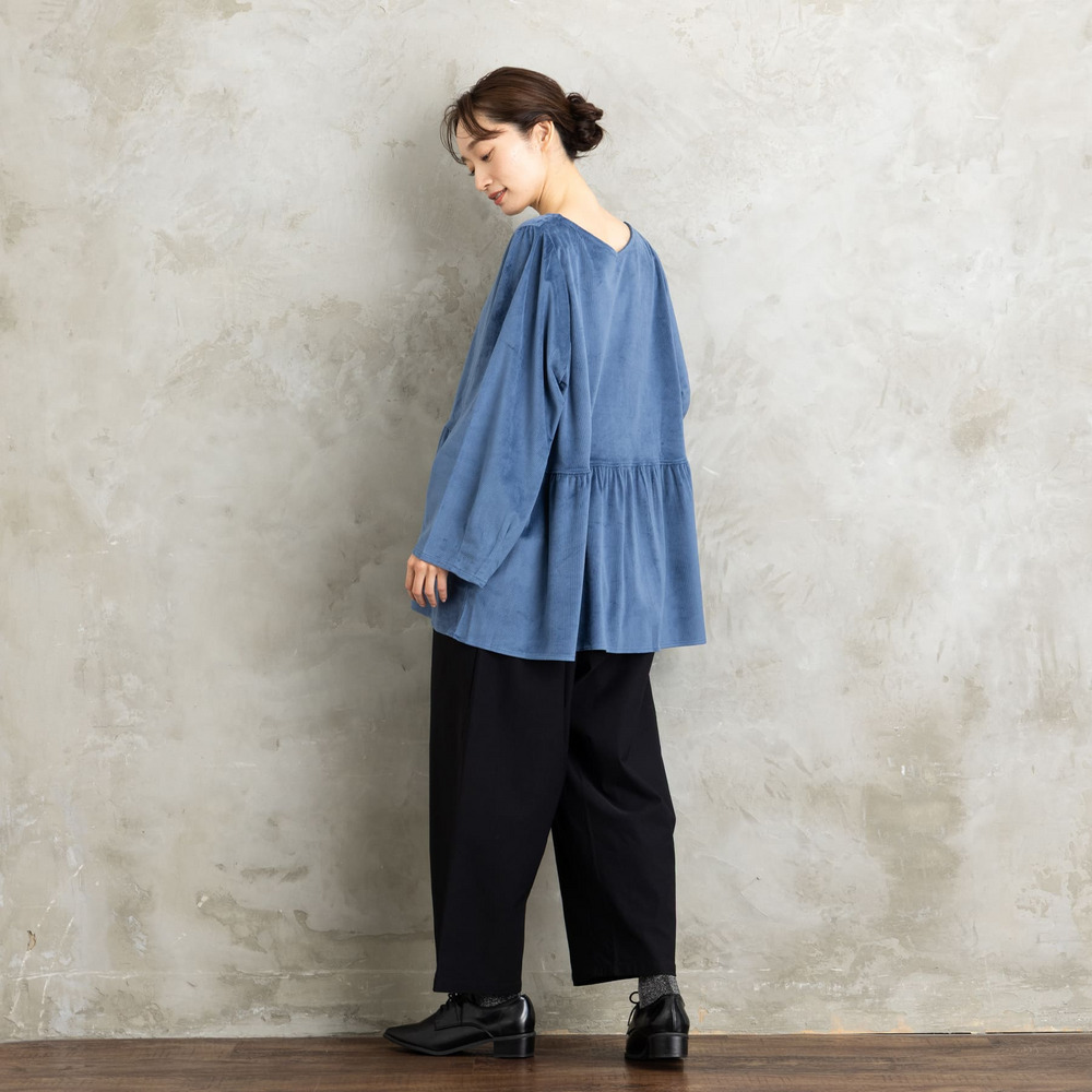 微起毛のカットコーデュロイ素材で仕立てた、季節感たっぷりのプルオーバー。