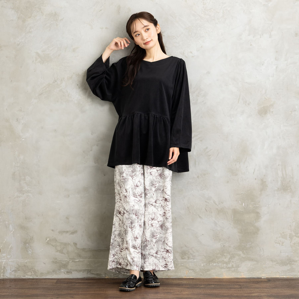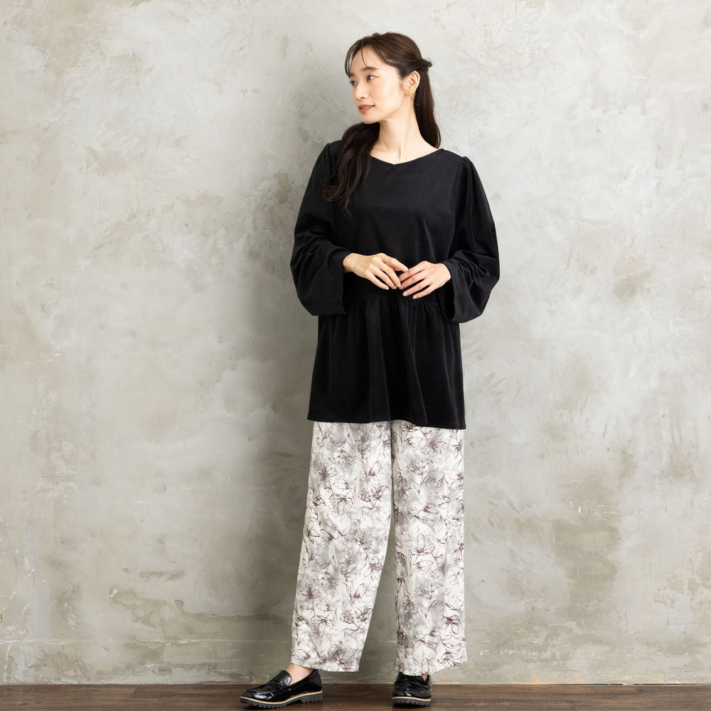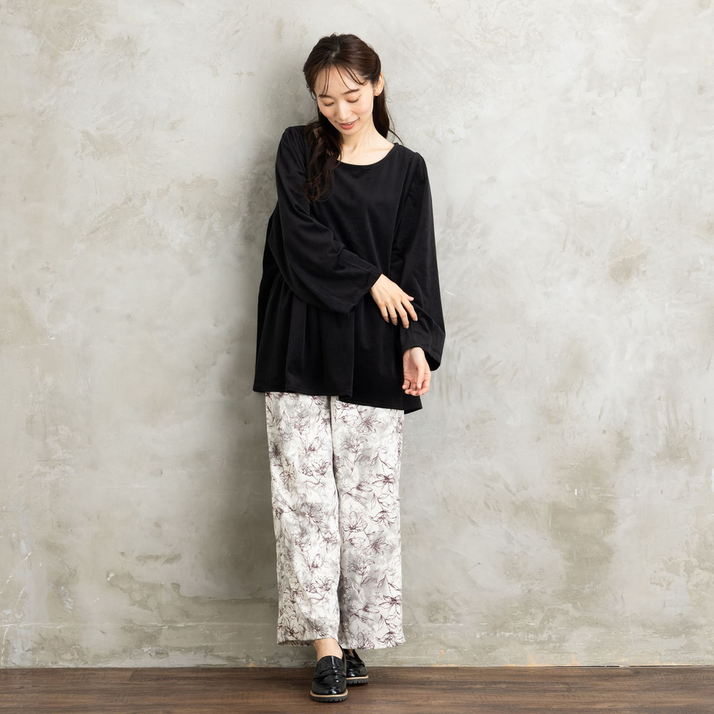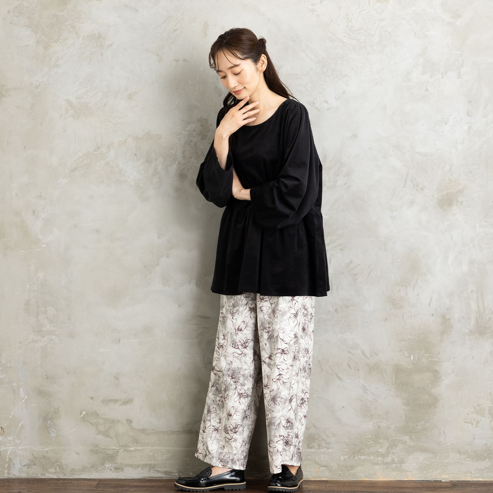 切り替えギャザーがふんわりとしたシルエットを生み、女性らしさを引き立てます。