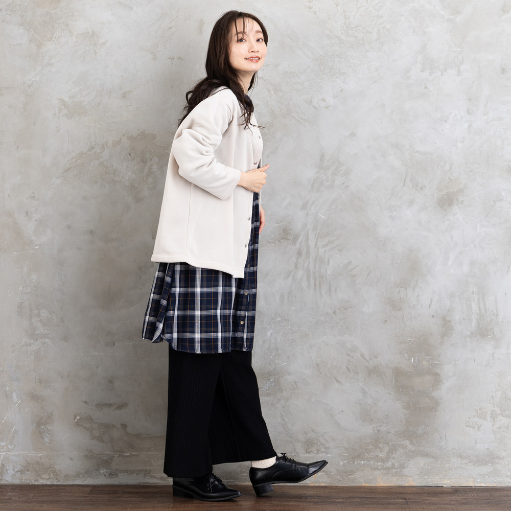 ブラウスの上に羽織ってきれいめカジュアルに。
