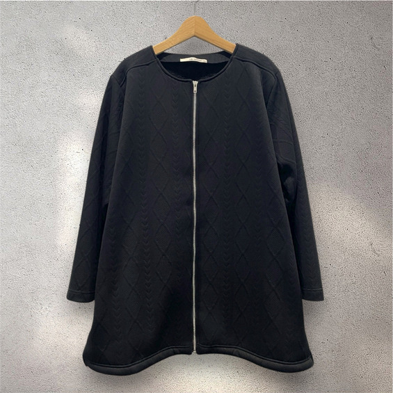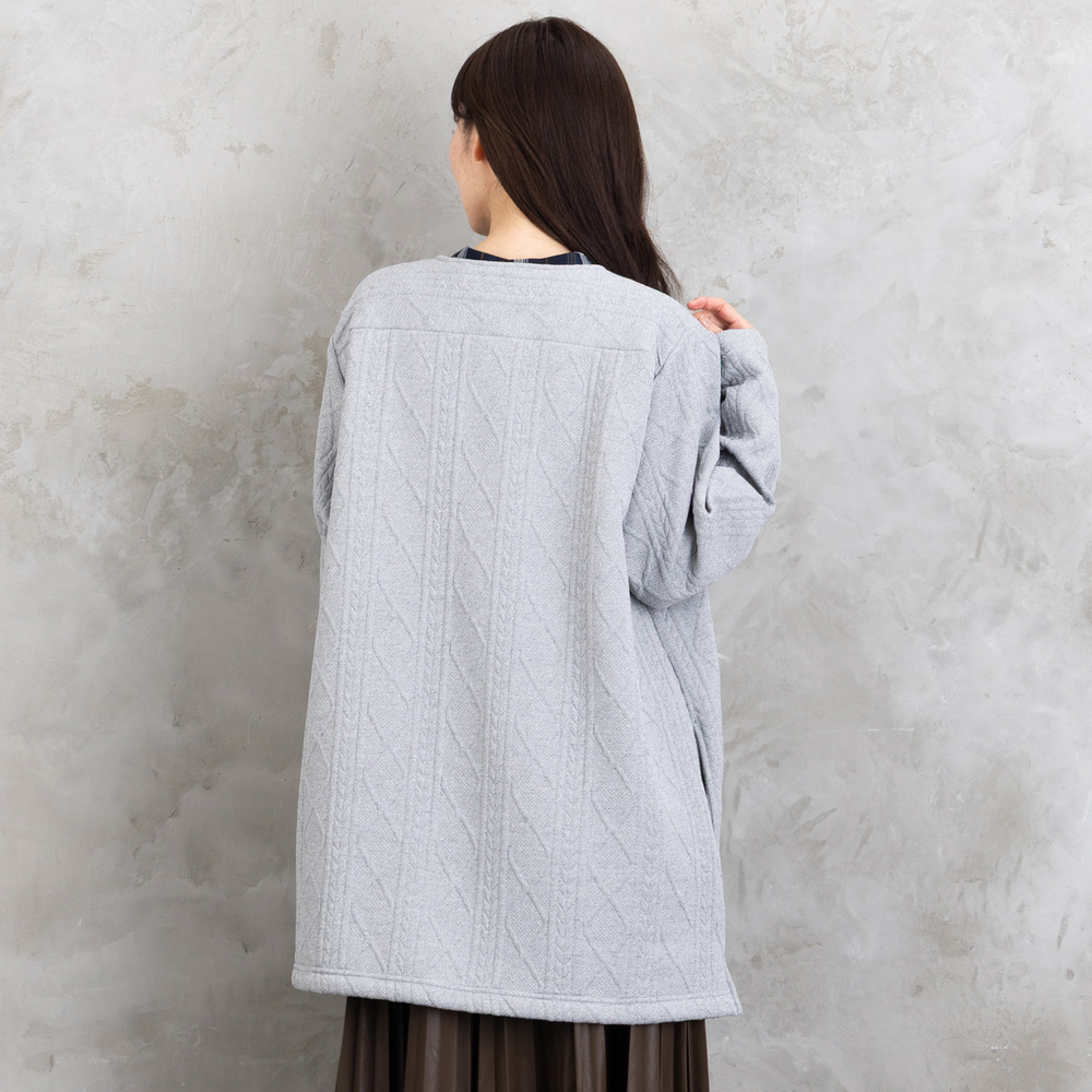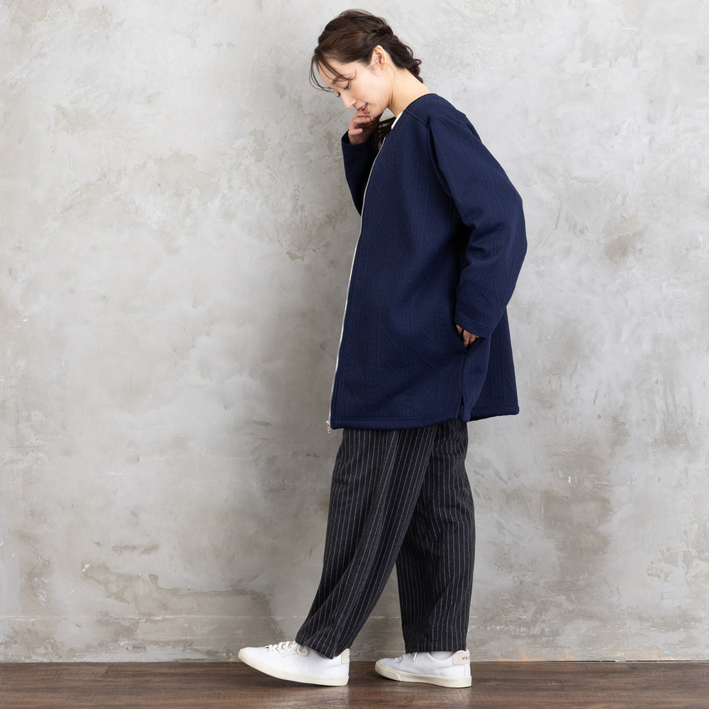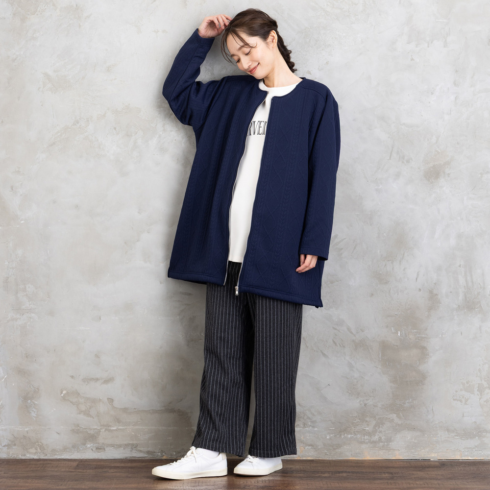 ふっくらとしたジャガード素材が上品な印象を与えるショートコート。