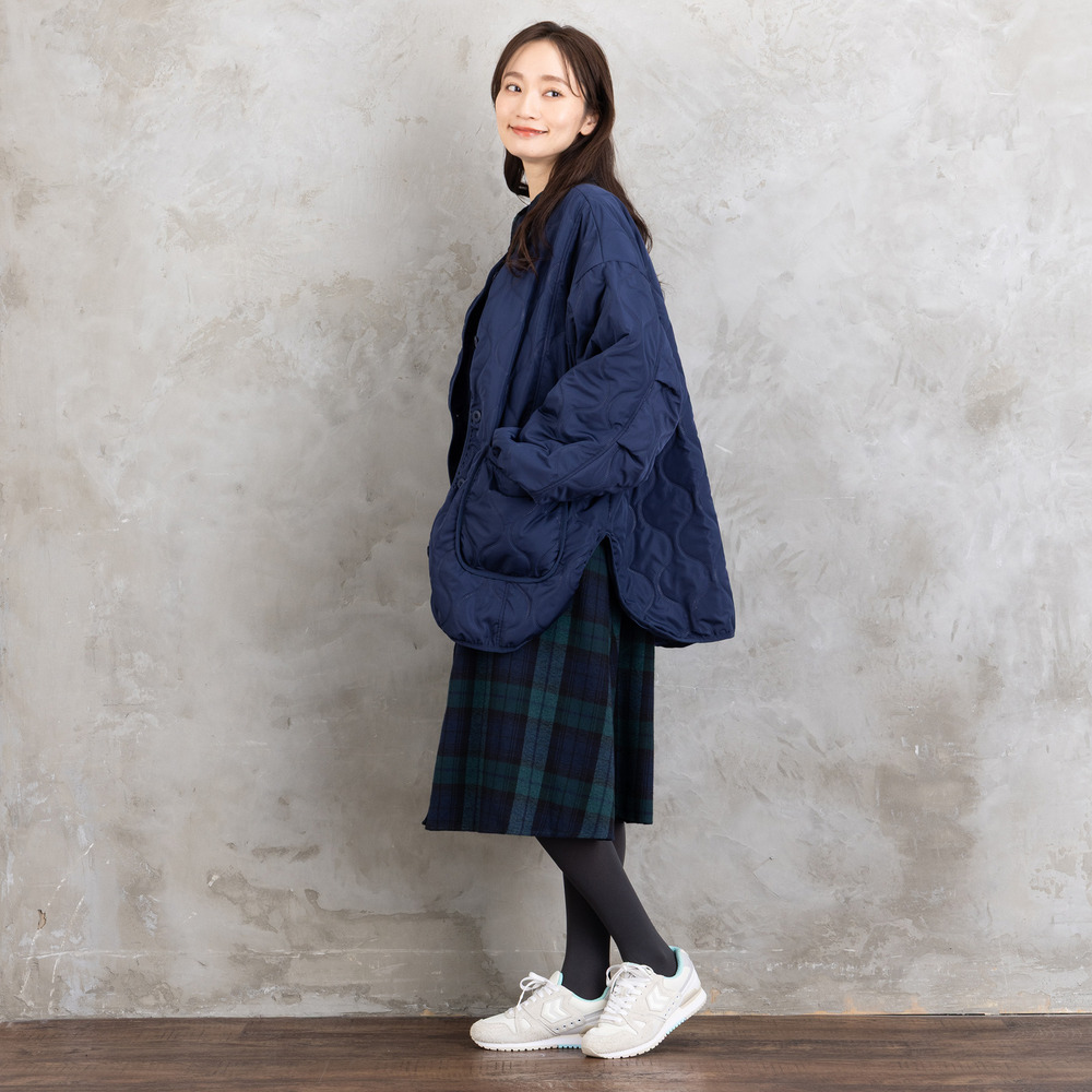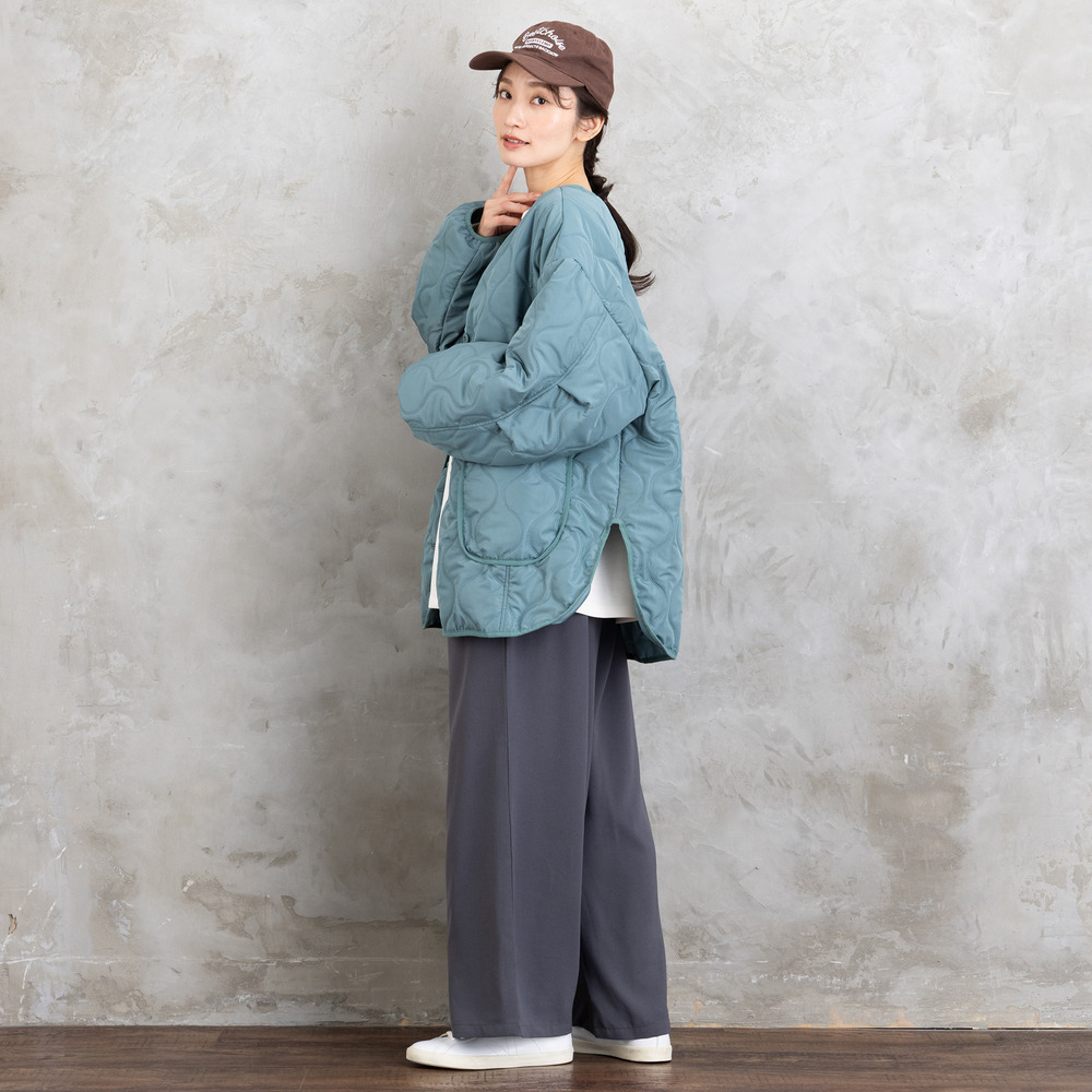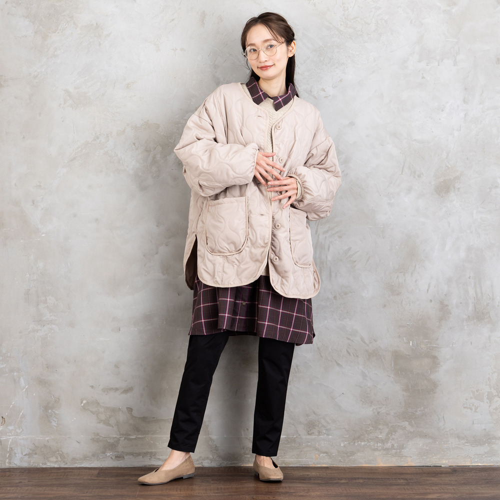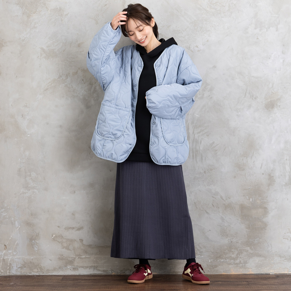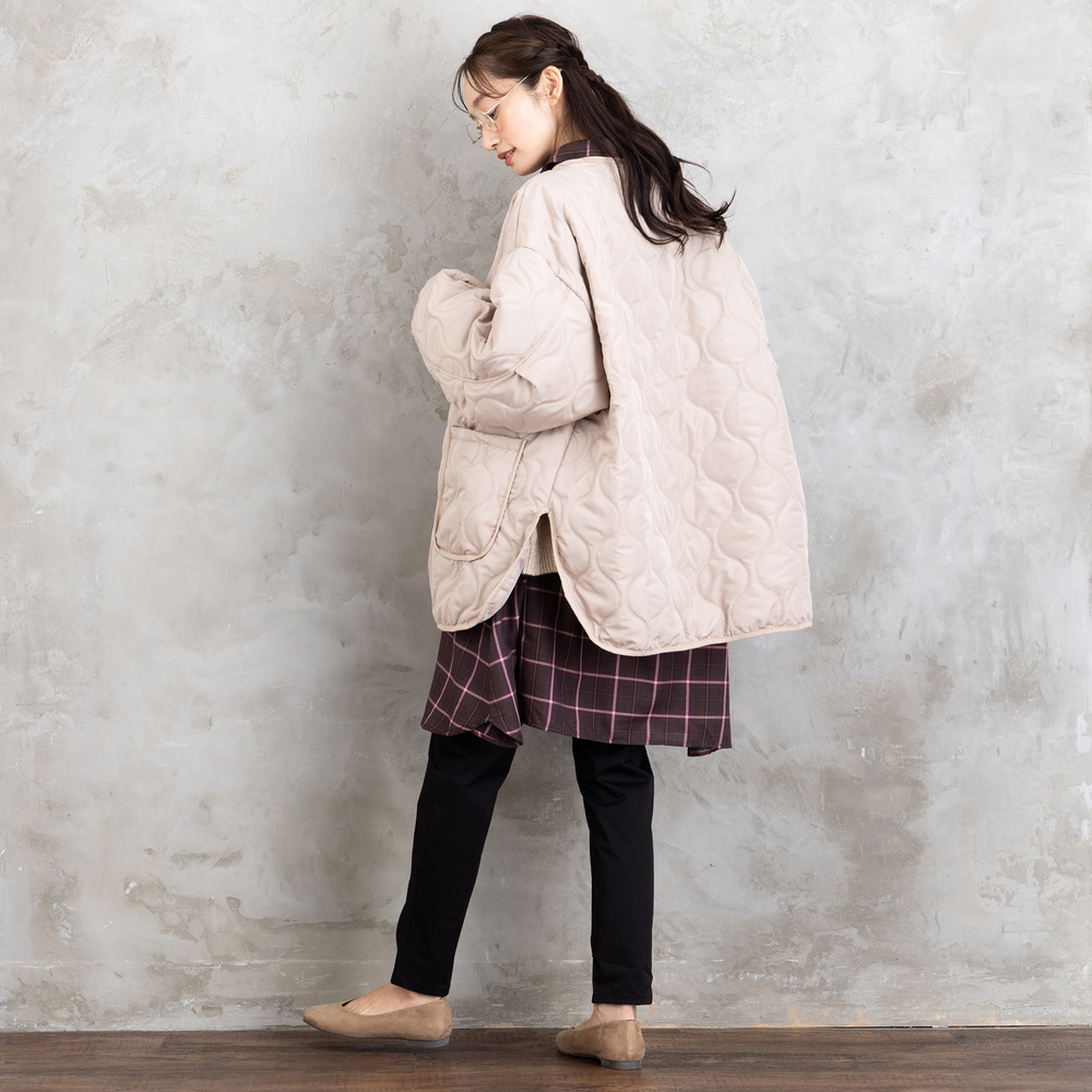 丸みのあるキルティングデザインが女性らしい印象のジャケット。