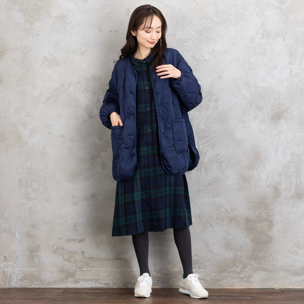 軽量ながら中綿入りで暖かく、季節の変わり目から冬本番まで活躍します。