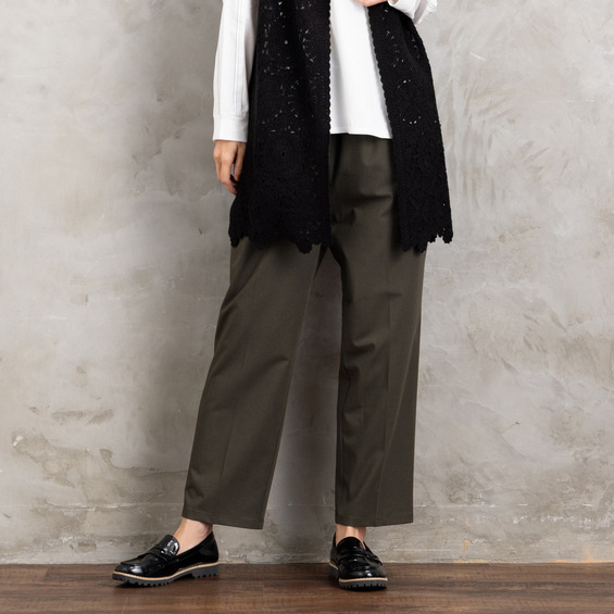 センタープレスが脚のラインをすっきりと見せ、大人のきれいめスタイルに仕上げます。