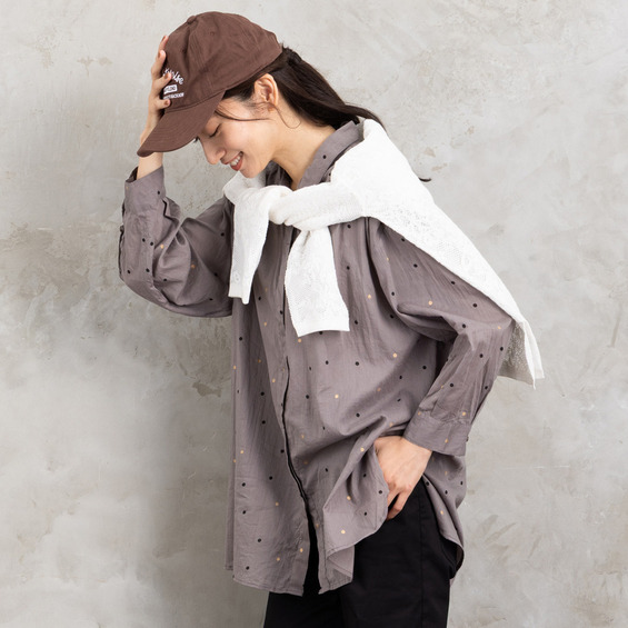 【ドット柄で華やぎをプラス。大人の抜け感シャツブラウス】