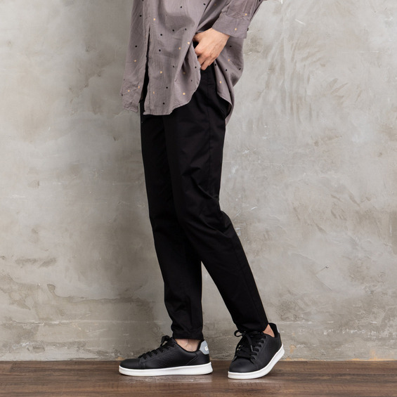 脚のラインをすっきりと見せるテーパードシルエットが魅力のパンツ。