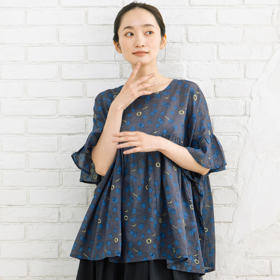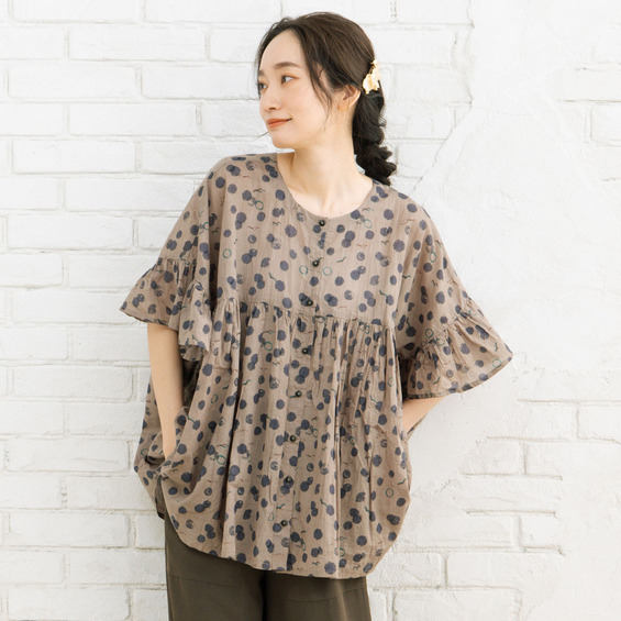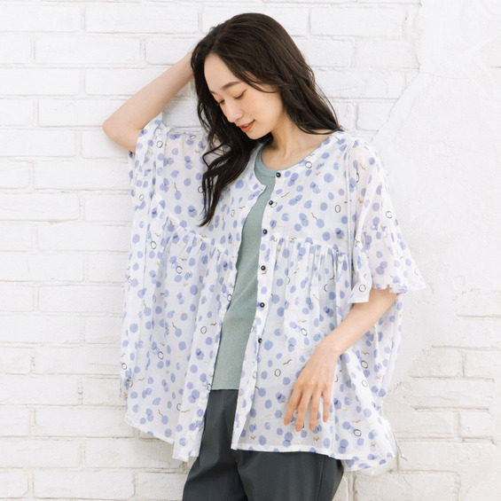 21号(6L~) カモメ×水彩ドットプリント2wayブラウス