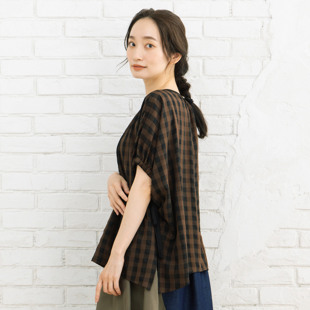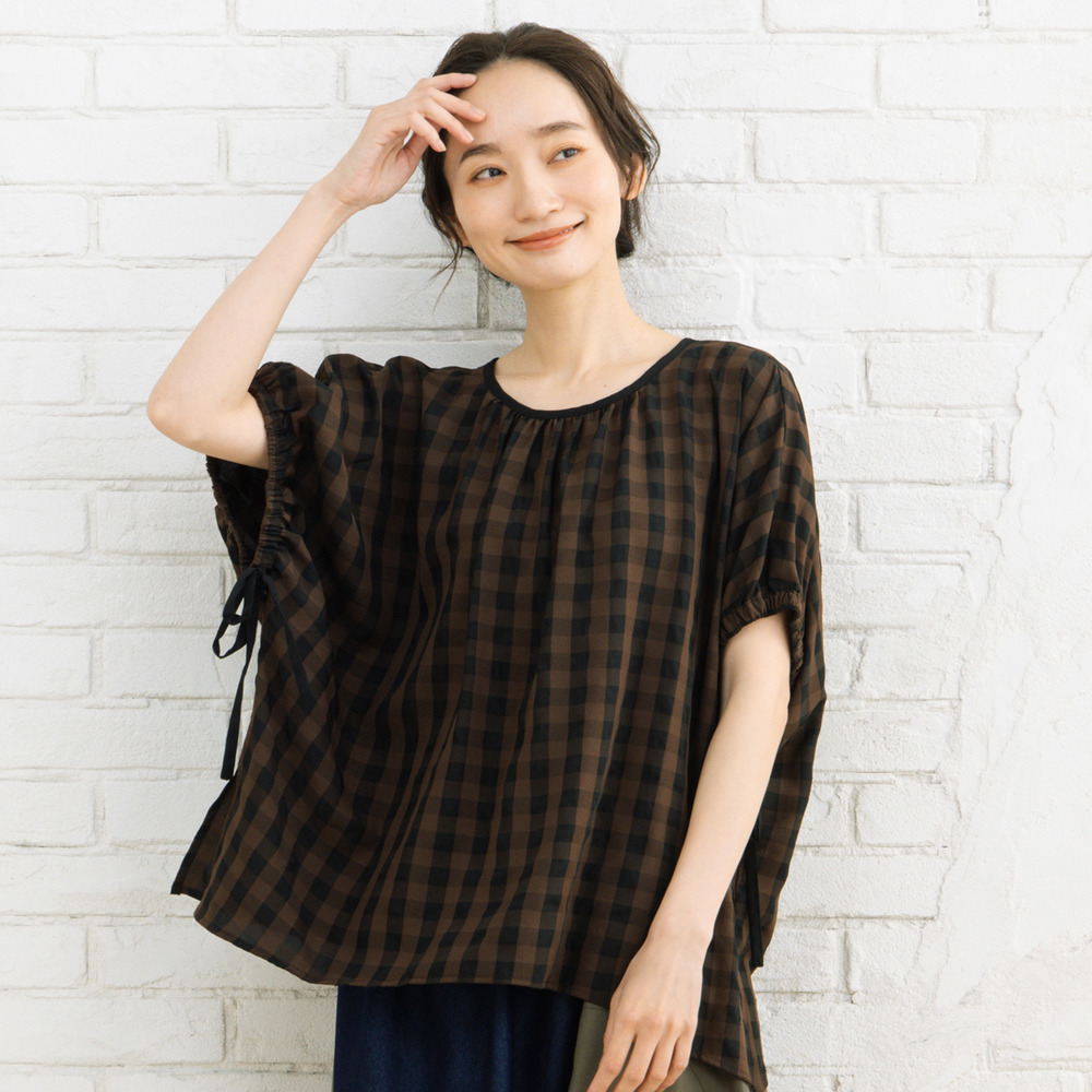 21号(6L~) ヴィンテージギンガムジョーゼットブラウス