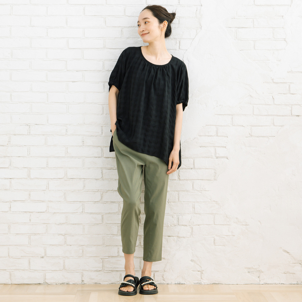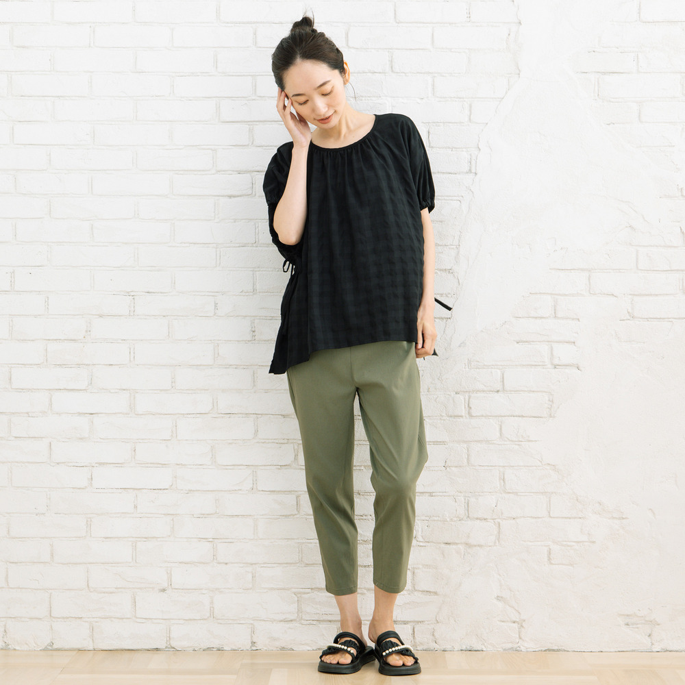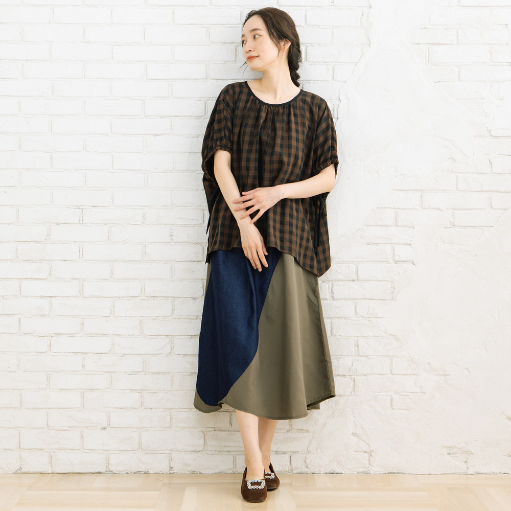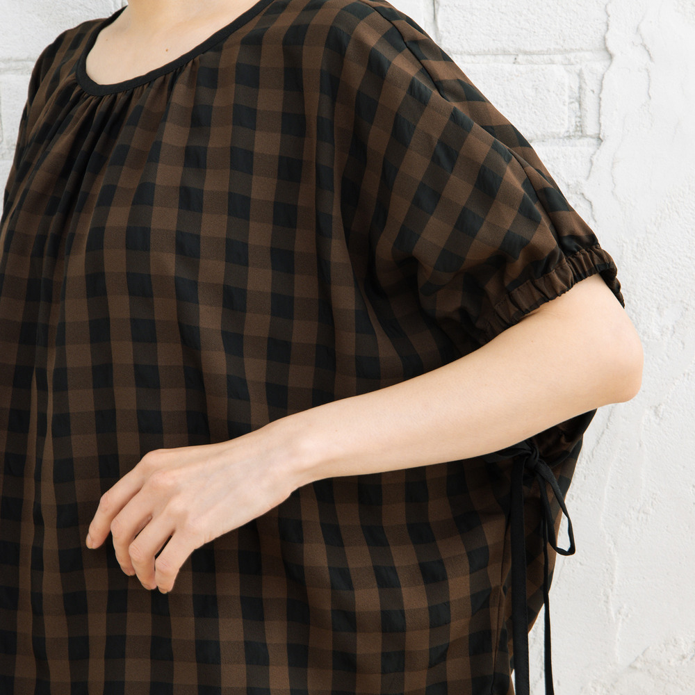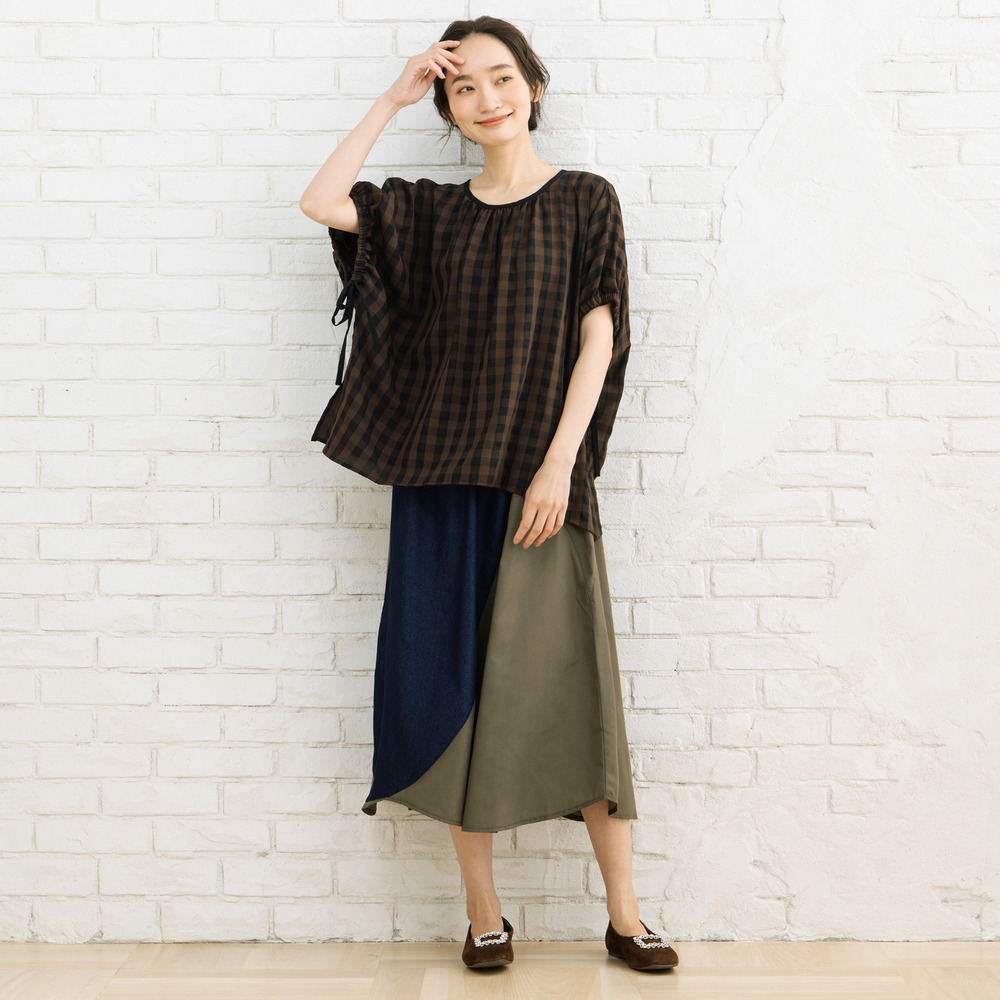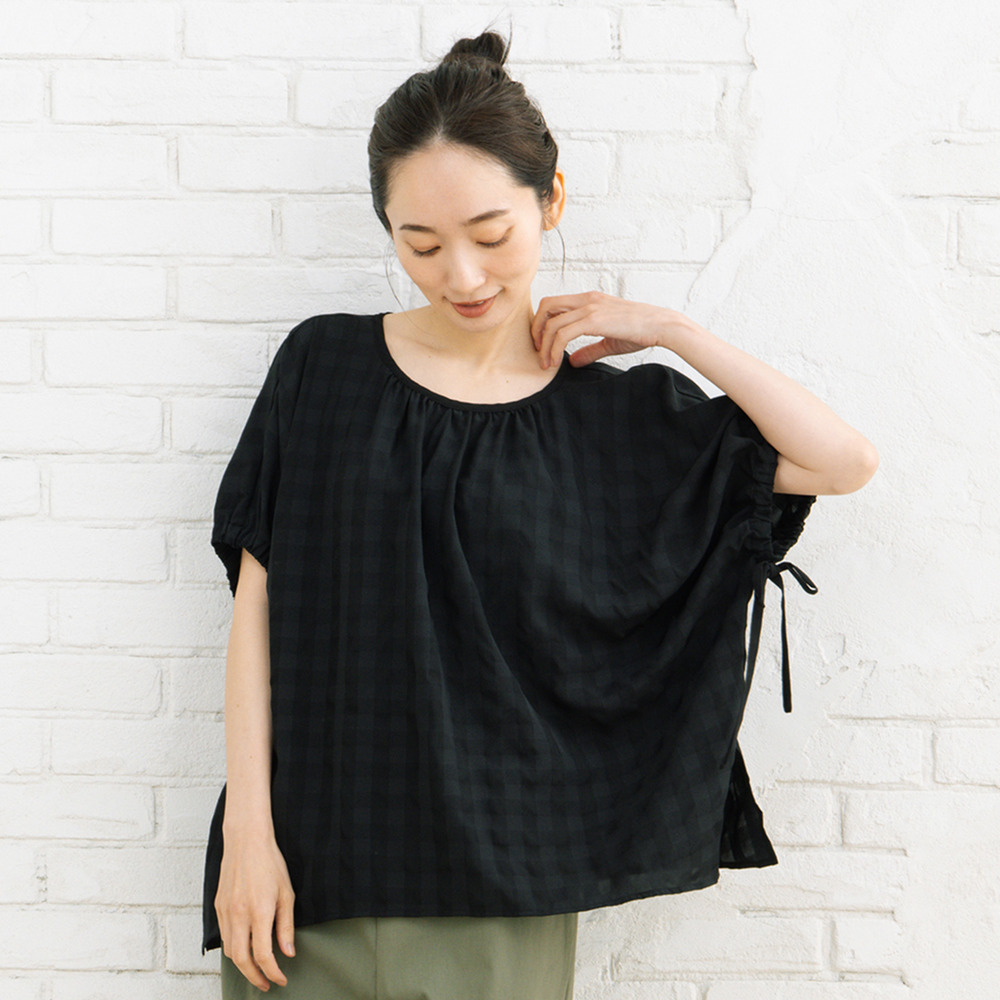 #大人フェミニン #凹凸素材 #ギャザーデザイン #ドロストブラウス #ギンガムチェック#きれいめカジュアル #華やぎトップス #sabstreet