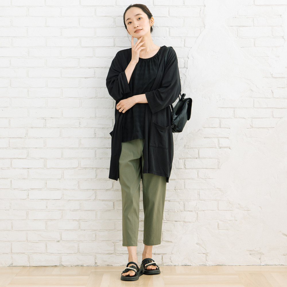 ワイドパンツやテーパードパンツと合わせて、きれいめカジュアルな着こなしに。