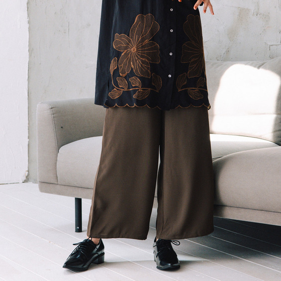 落ち感のある柔らかな素材が生み出す、美しいドレープ感が魅力の一枚。