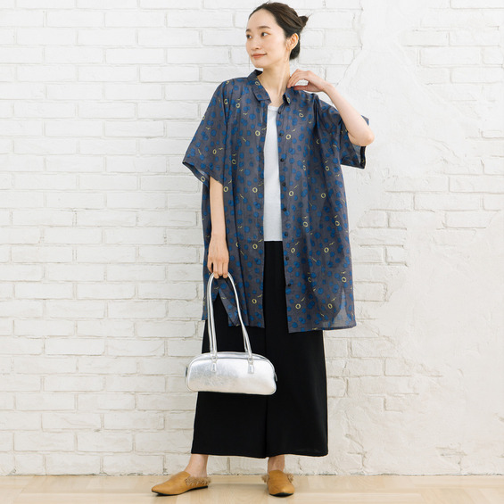 チュニックとして1枚で着るのはもちろん、前を開けて羽織りとして使えばロングシャツ風のレイヤードスタイルにも◎