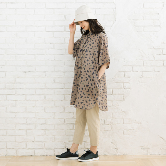 ランダムに描かれた水彩ドットとカモメが目を引く、リラックス感あふれるチュニック。