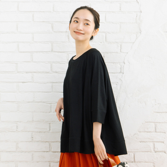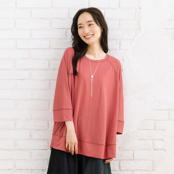 ラグランスリーブとゆとりのある身幅が、動きやすさとさりげない抜け感を演出します。